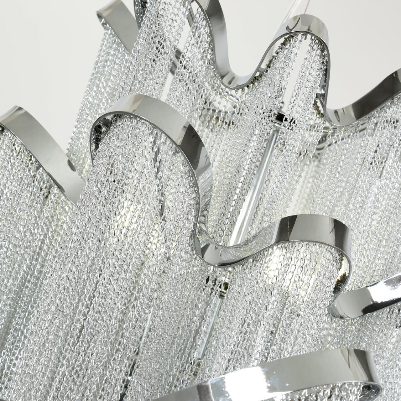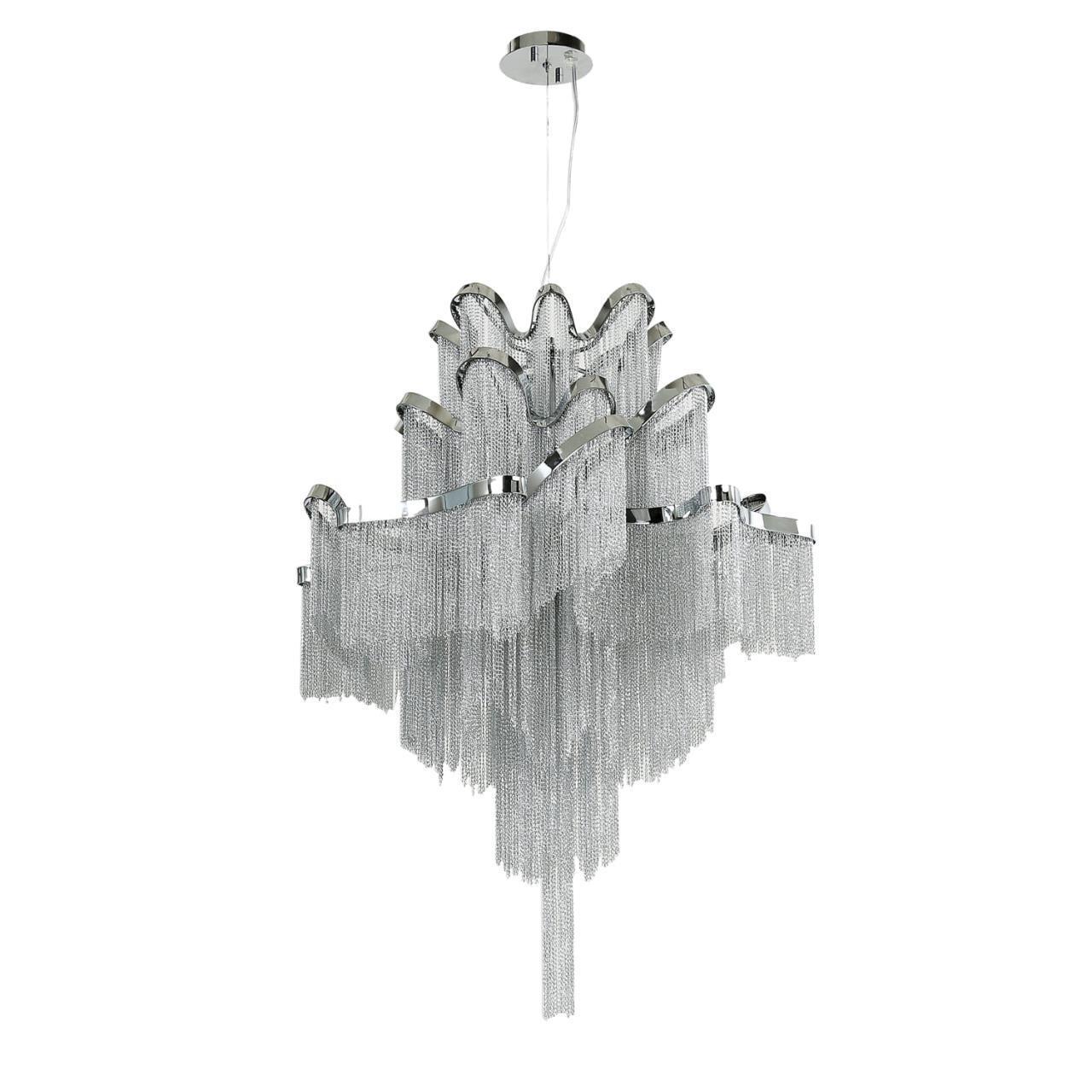 90400,00 ₽ 18 в наличии гостиная; спальня; кухня; детская; холл; кафе; ресторан; кабинет; столовая; студия напоминающих изысканную драпировку. Несмотря на свой уникальный дизайн создает завораживающий визуальный эффект благодаря сотням освещенных серебристых цепочек эта коллекция чрезвычайно универсальна и подходит практически для любого роскошного дома 1156-8P, подвесная люстра, D600xH880/1880, 8xE14x40W, excluded