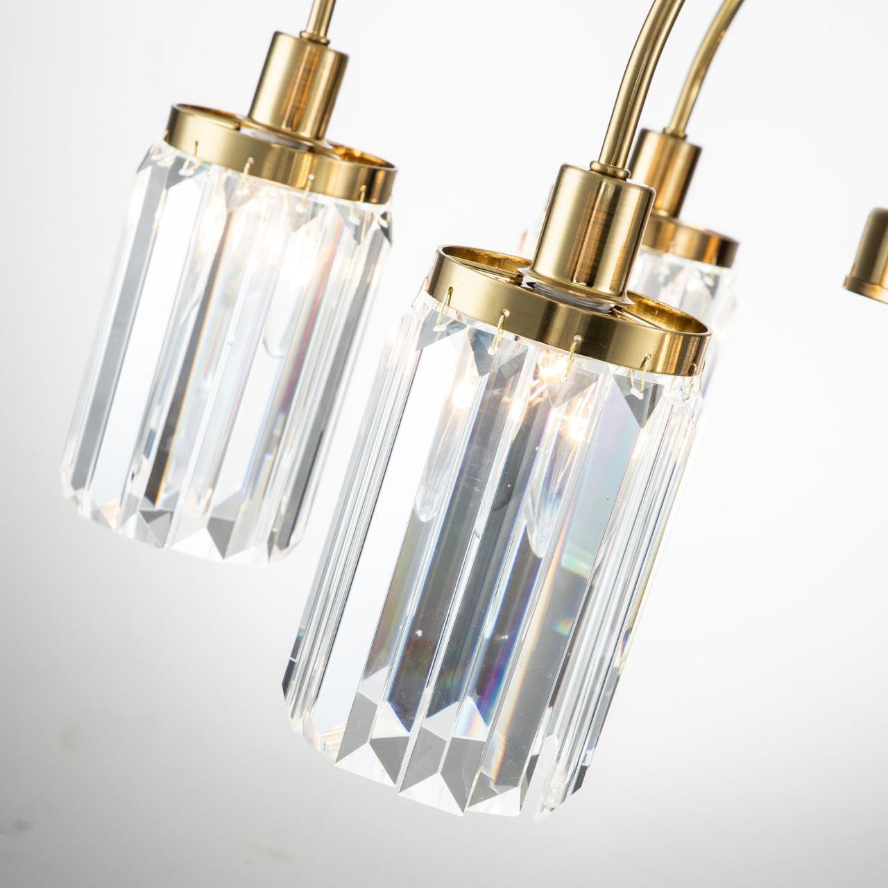 32000,00 ₽ 30 в наличии гостиная; спальня; кухня; детская; холл; кафе; ресторан; кабинет; столовая; студия Duke – коллекция в современном стиле. Рожки изысканной формы которые красиво преломляют свет ламп. Центральный шток украшен стеклянным цилиндром. покрыты золотой гальваникой и декорированы хрустальными подвесками прямоугольной формы 2969-6P, подвесная люстра, D660xH495/1495, 6xE14x40W, excluded