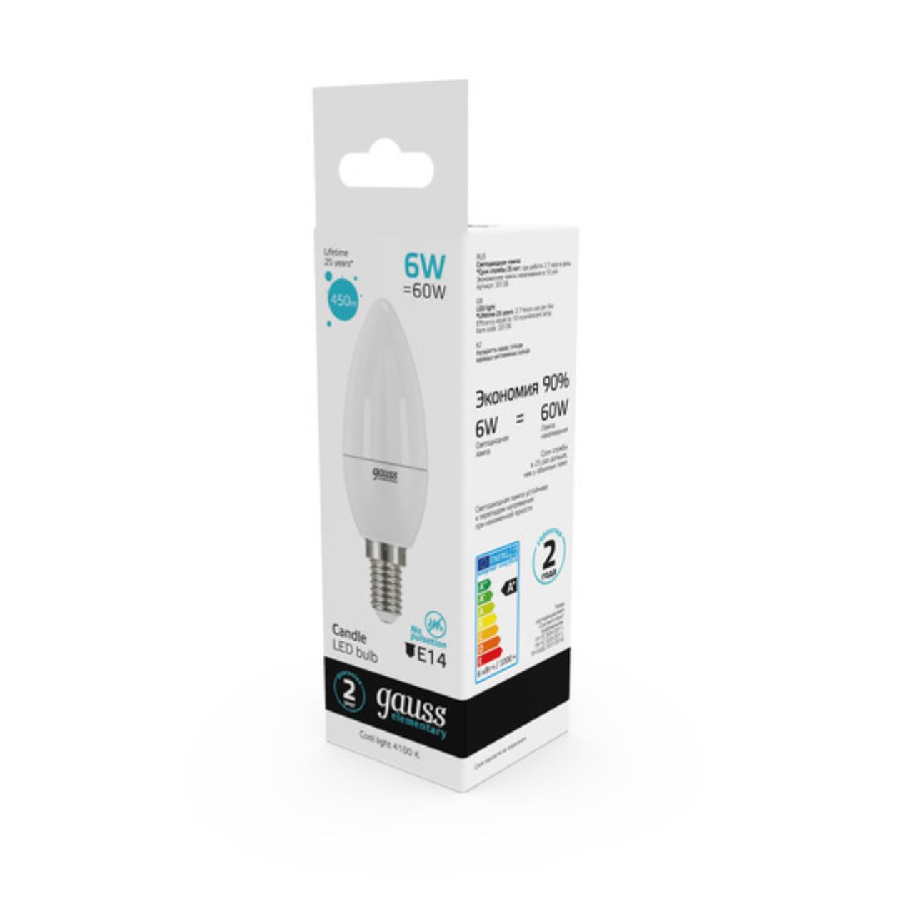 177,00 ₽ 42 в наличии 24 3,8 11 Алюминий||Пластик Светодиодная лампа Gauss Свеча 6W 450Lm 4100K E14 33126 E14 3 Нет 20 РОССИЯ Короткий Маленький 240 Нейтральный 33126 Лампа Gauss LED Elementary Свеча 6W E14 450lm 4100K 1/10/100