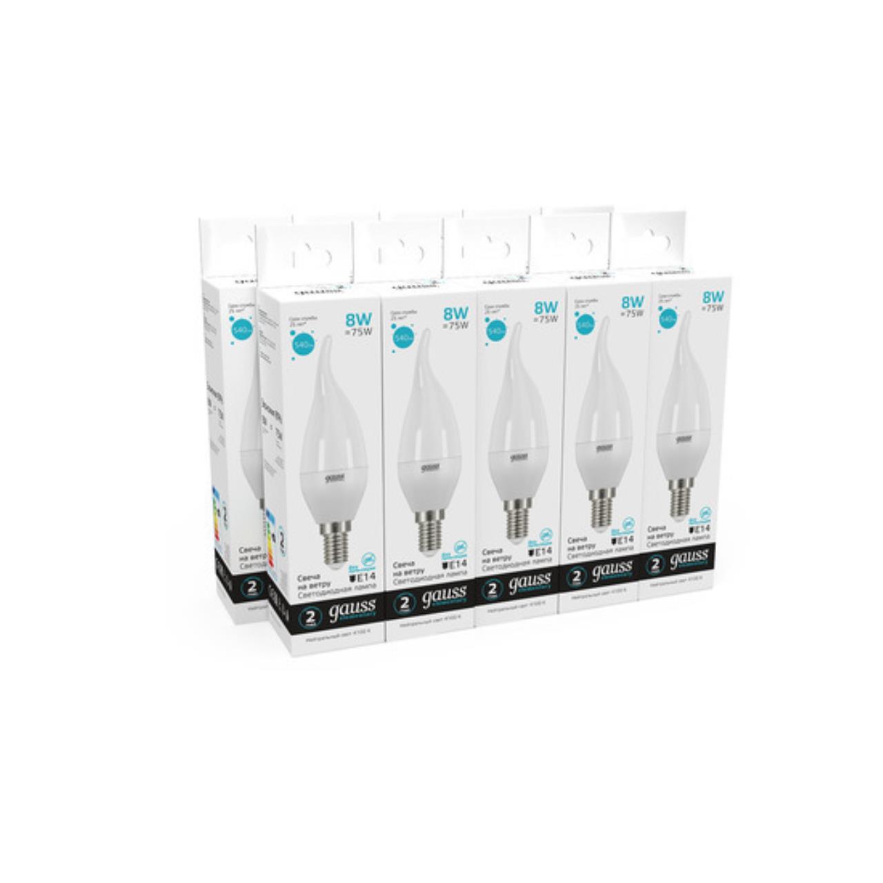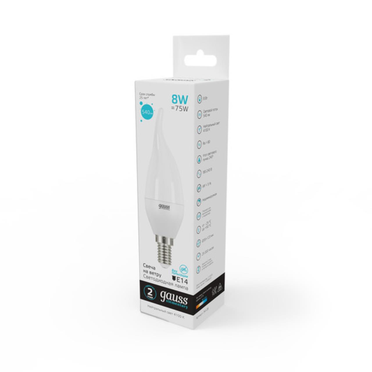 34128 Лампа Gauss Elementary Свеча на ветру 8W 540lm 4100K Е14 LED 1/10/50