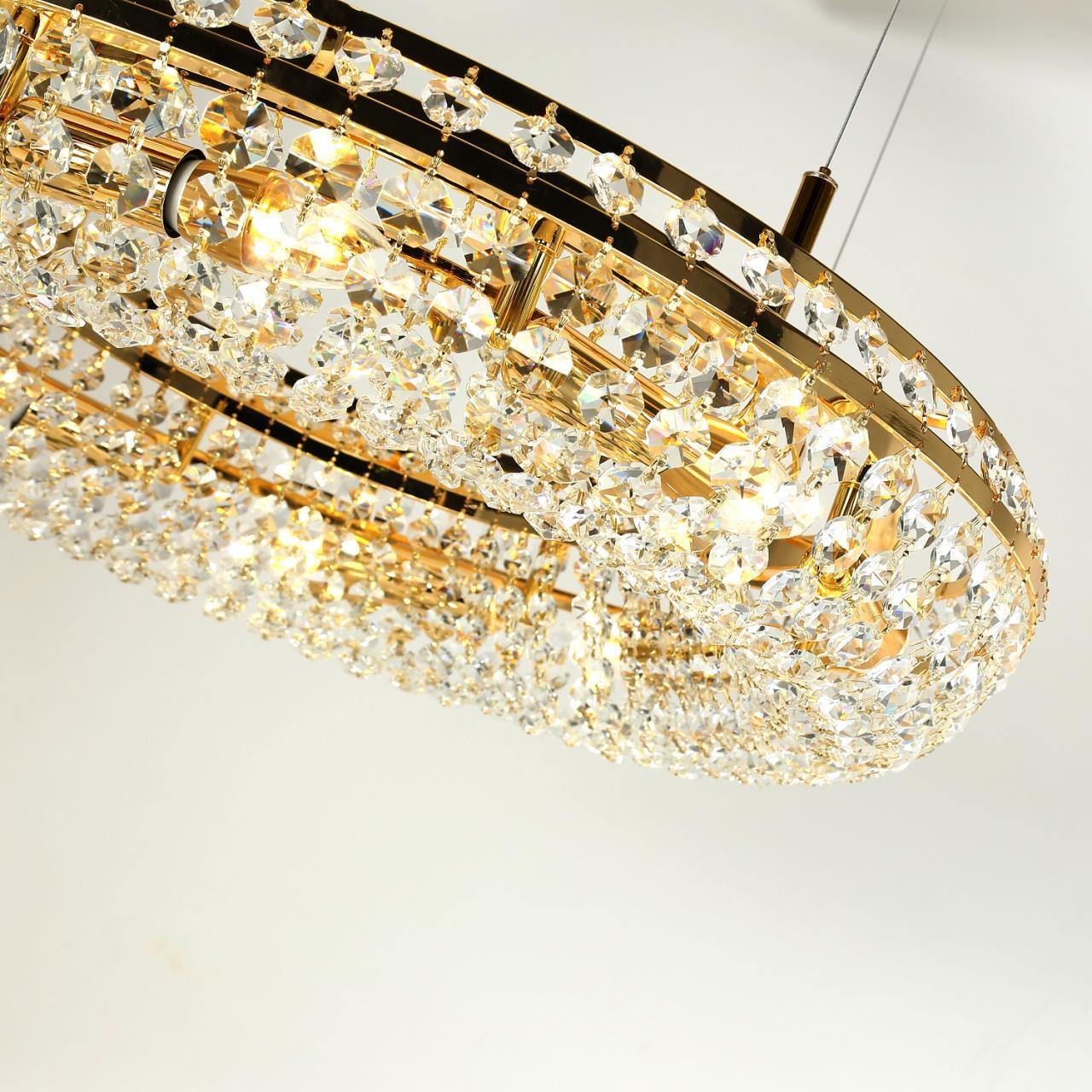 71600,00 ₽ 16 в наличии гостиная; спальня; кухня; детская; холл; кафе; ресторан; кабинет; столовая; студия плафон в виде объемного обруча состоит из прозрачных хрустальных восьмигранников. 4015-8P, подвесная люстра, D600xH120/1120, 8xE14x40W, excluded