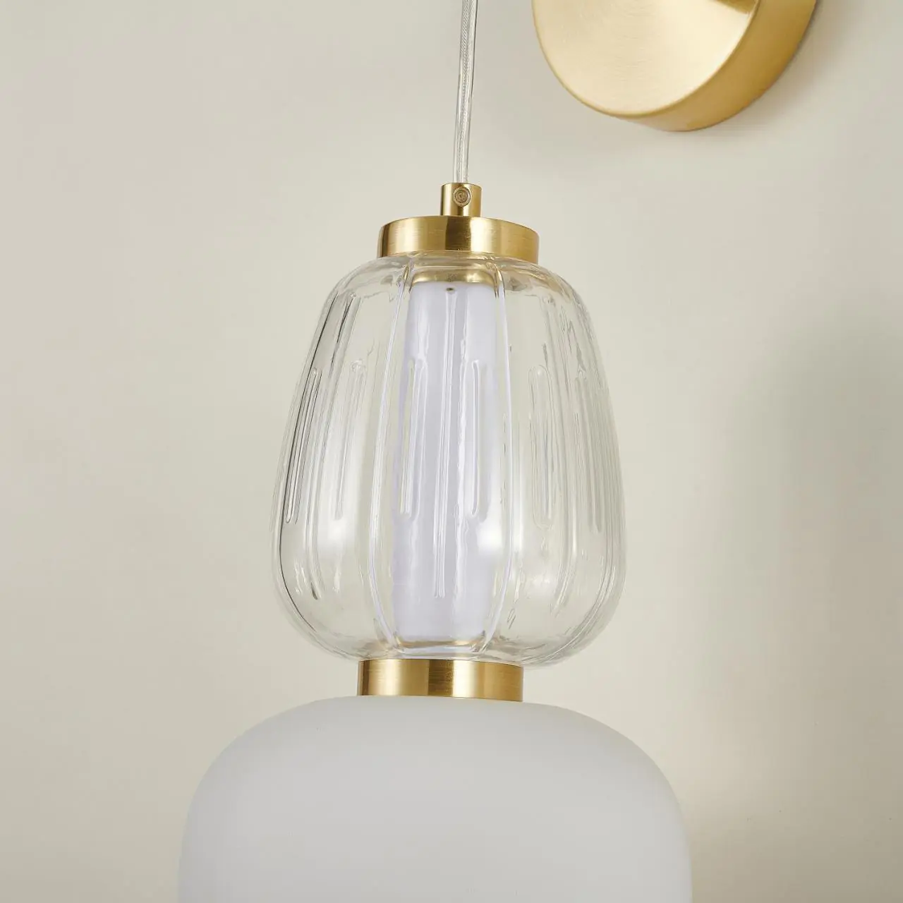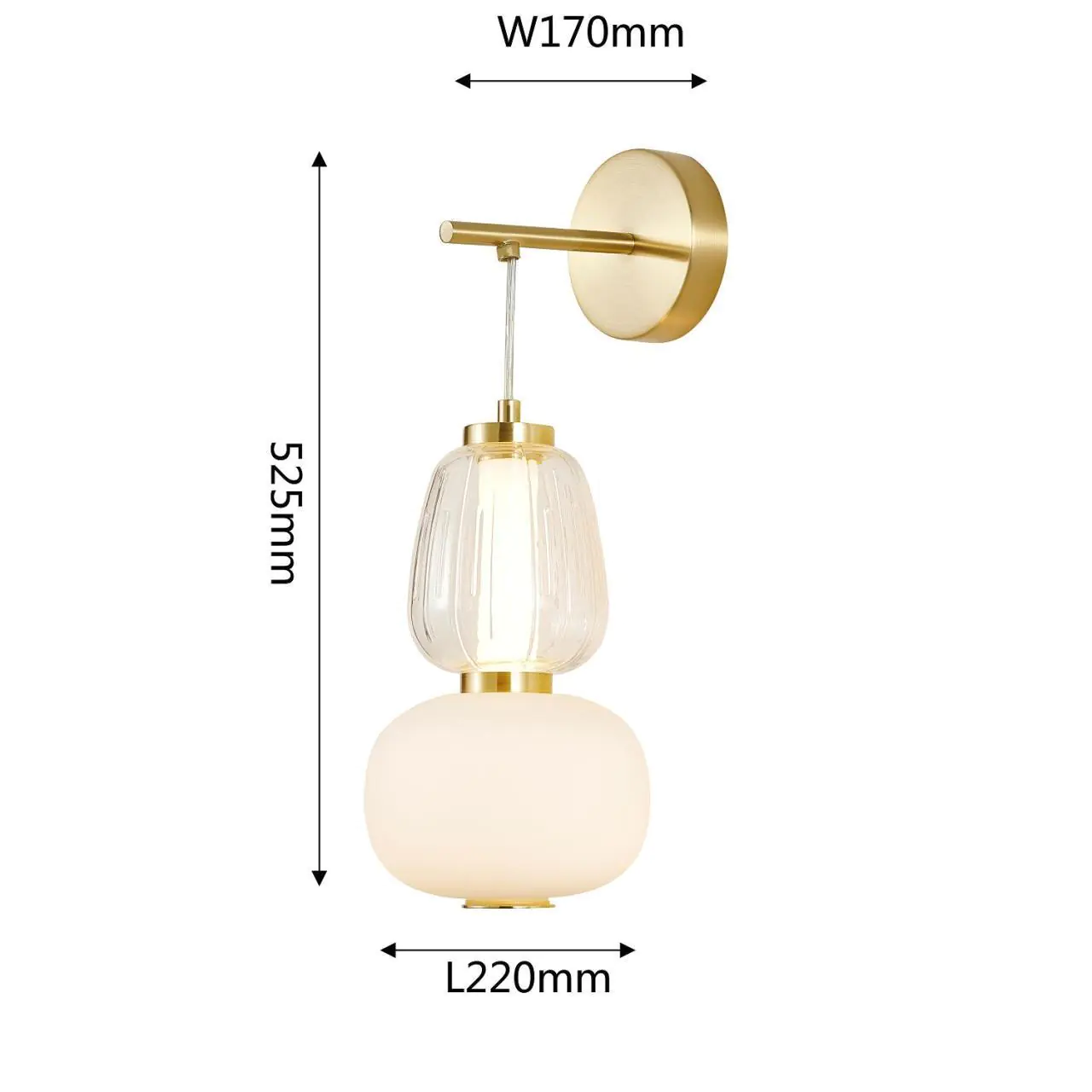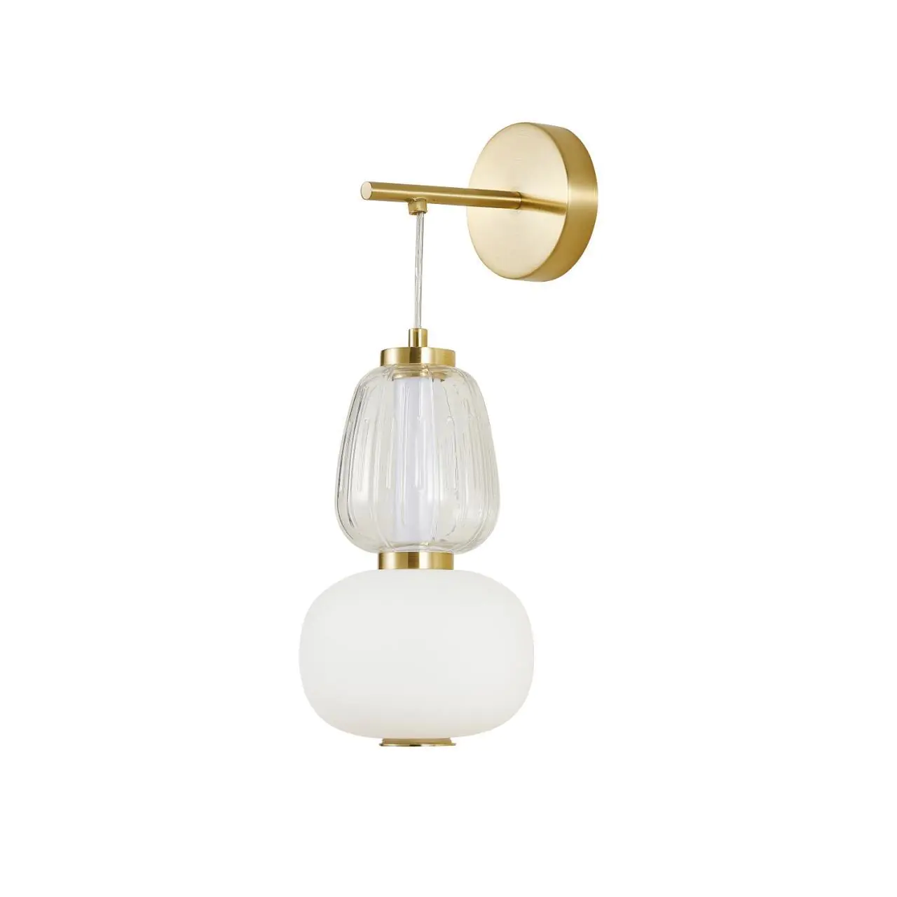16600,00 ₽ 10 в наличии гостиная; спальня; кухня; детская; холл; кафе; ресторан; кабинет; столовая; студия плафоны в виде бусин из выдувного стекла двух видов прозрачного и цвета опала. 4057-1W, настенный светильник, D220xW170xH375/525, LEDx19W, 1255LM, 3000K, included
