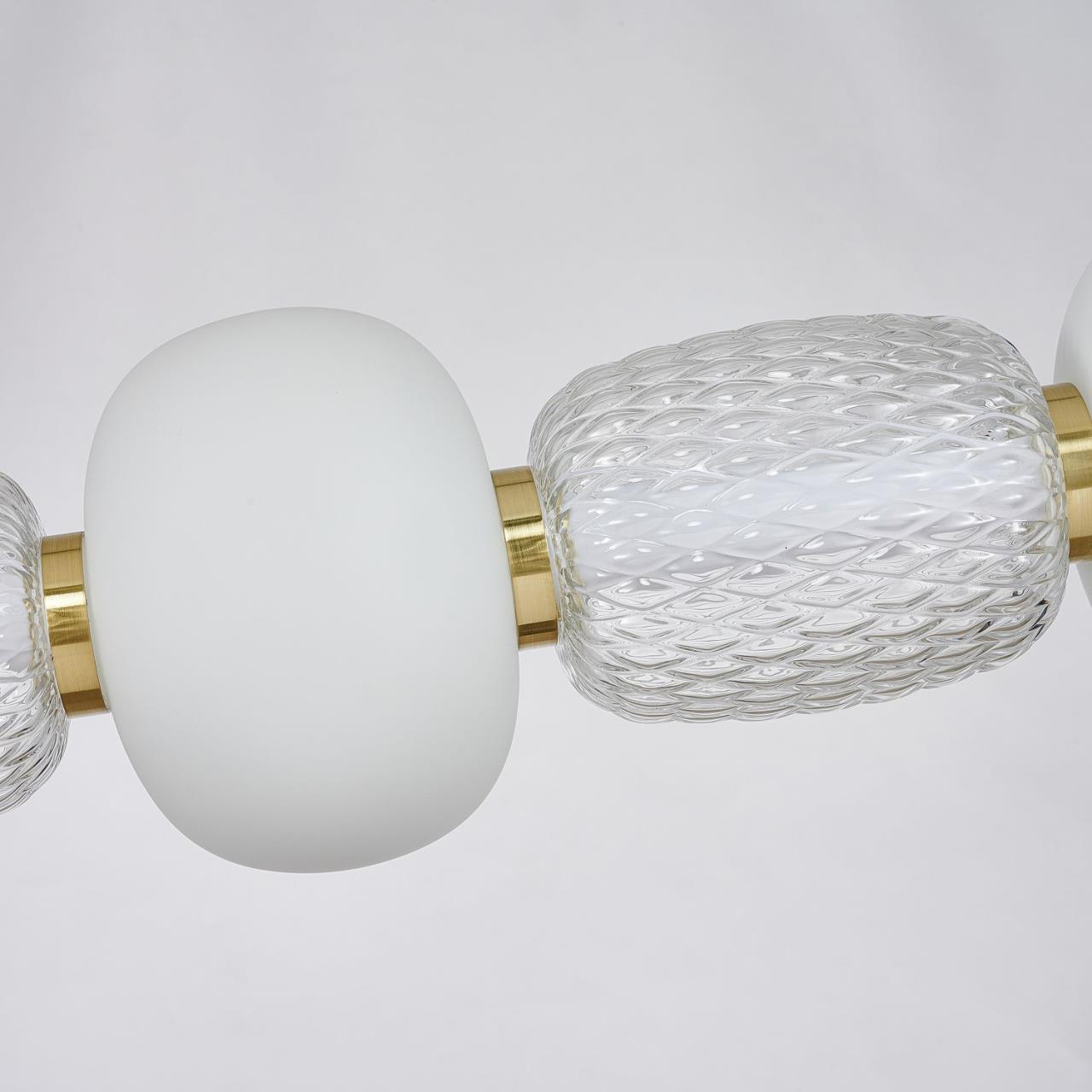 39200,00 ₽ 31 в наличии гостиная; спальня; кухня; детская; холл; кафе; ресторан; кабинет; столовая; студия плафоны в виде бусин разнообразных форм из выдувного стекла двух видов прозрачного и цвета опала 4057-3P, подвесная люстра, L1100xW170xH230/1430, LEDx47W, 3258LM, 3000K, included