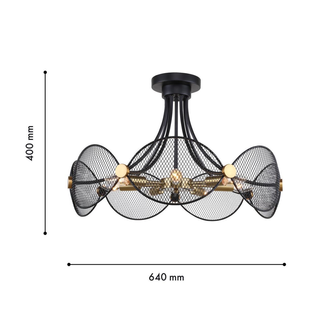 17000,00 ₽ 5 в наличии гостиная; спальня; кухня; детская; холл; кафе; ресторан; кабинет; столовая; студия декоративные элементы из перфорированного металла черного цвета Металлический каркас черного цвета в сочетании с декоративными элементами латунного цвета 4084-7P, подвесная люстра, D640xH400, 7xE14x40W, excluded