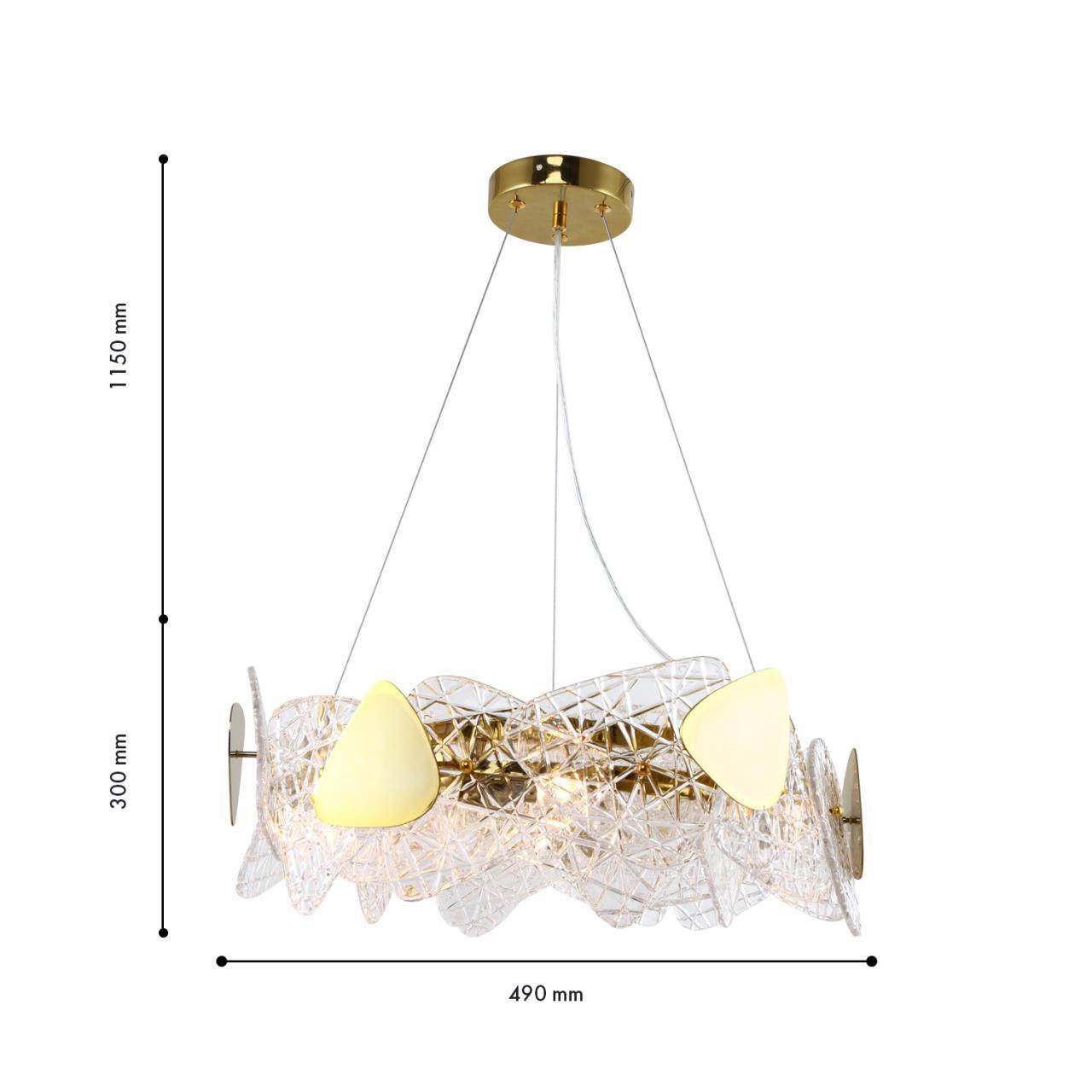 24100,00 ₽ 17 в наличии гостиная; спальня; кухня; детская; холл; кафе; ресторан; кабинет; столовая; студия накладки из металла и прозрачного стекла кракле с "ледяными" узорами 4249-6P, подвесная люстра, D490xH300/1150, 6xG9x40W, excluded