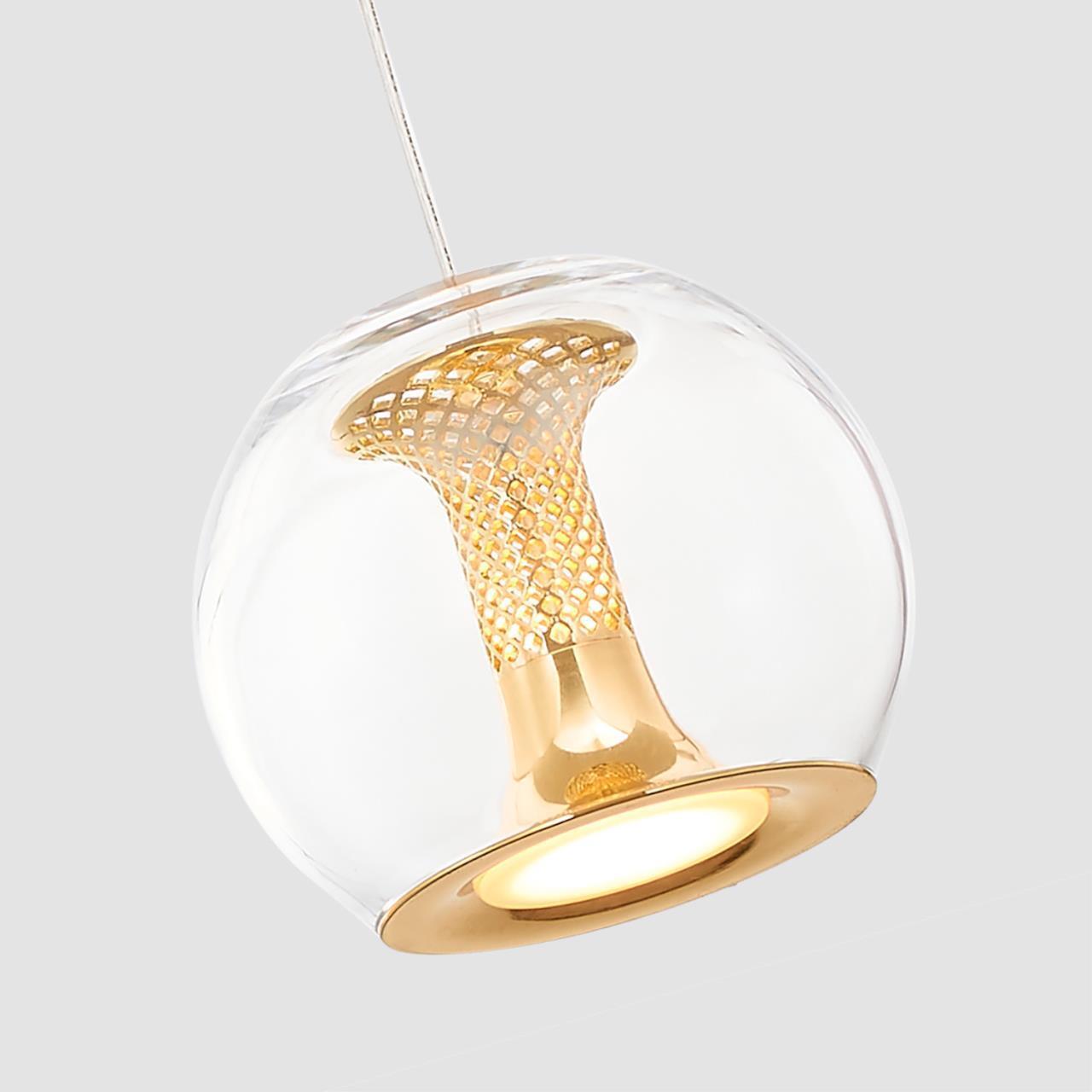 10900,00 ₽ 49 в наличии гостиная; спальня; кухня; детская; холл; кафе; ресторан; кабинет; столовая; студия плафон из выдувного стекла с внутренним декором в виде сетки из литого алюминия 4336-1P, подвес, D120xH300/1800, LEDx7W, 560LM, 4000K, included