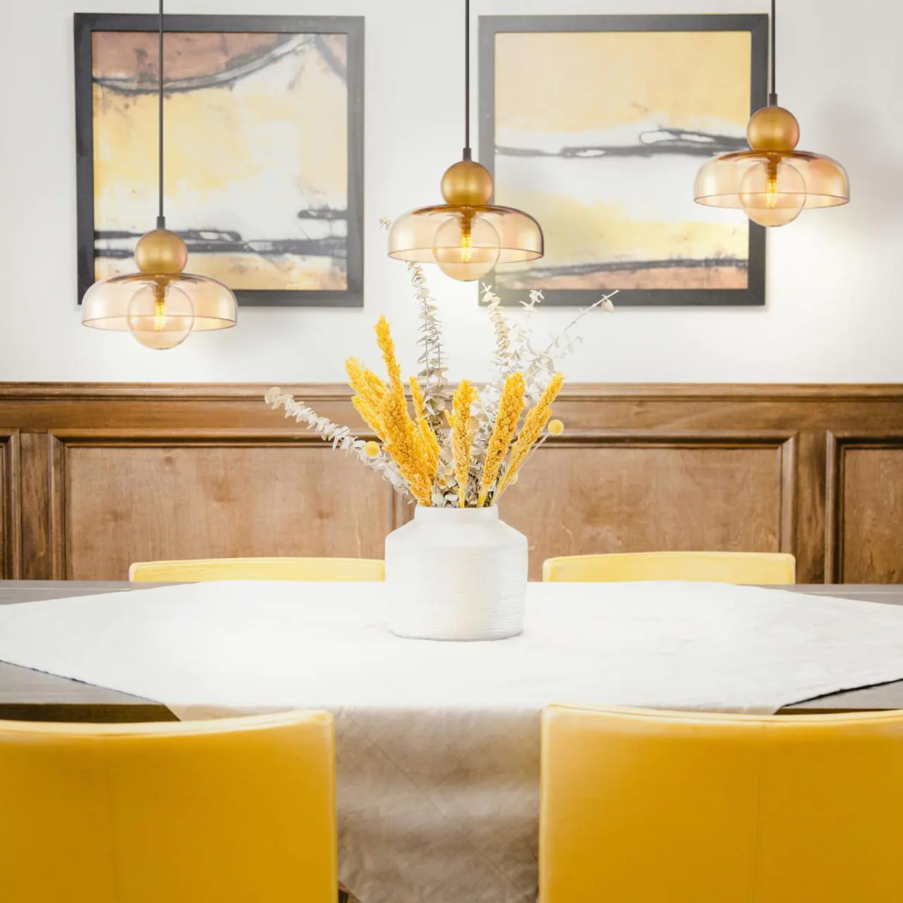 9100,00 ₽ 14 в наличии гостиная; спальня; кухня; детская; холл; кафе; ресторан; кабинет; столовая; студия Форма светильников коллекции Unda передает ощущение бесконечности которые пересекает внешний плафоном в виде купола. Сочетание янтарного и золотого цвета 4350-1P, подвес, D230xH385/1885, 1xG9LEDx5W, excluded
