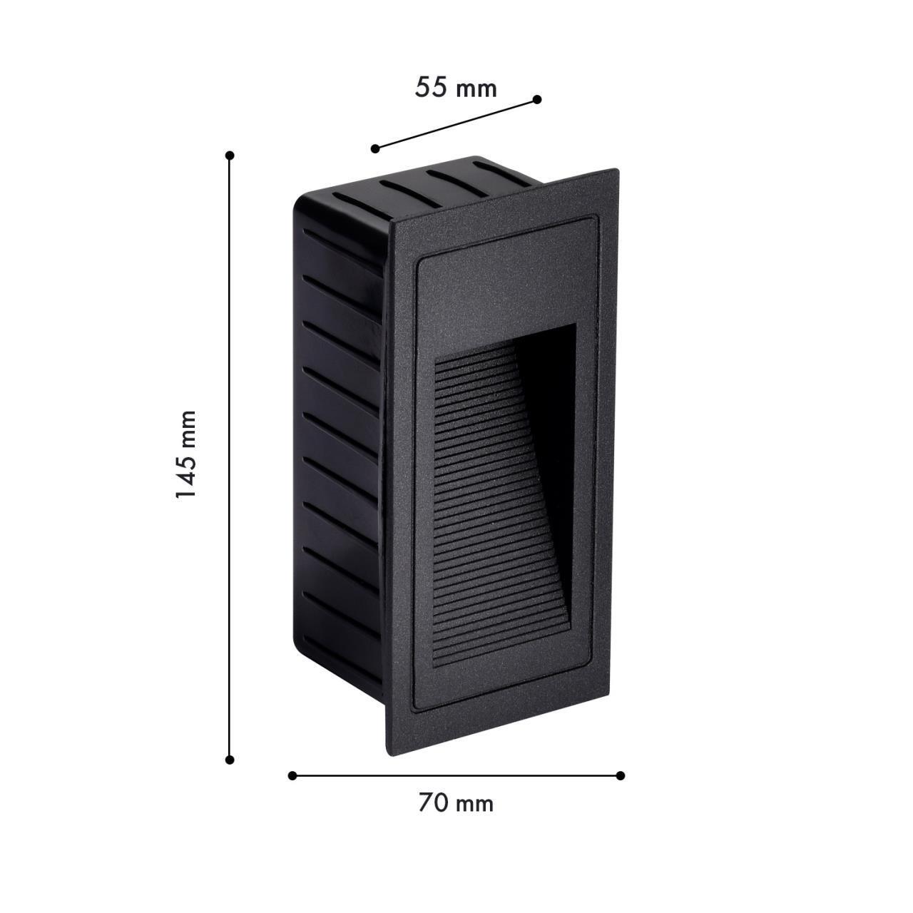 2600,00 ₽ 14 в наличии Корпус из металла черного матового цвета прямоугольной формы 4396-2W, уличный светильник, D55xW70xH145, cutout:W65xH130, LEDx3W, 263LM, 3000K, IP66, included
