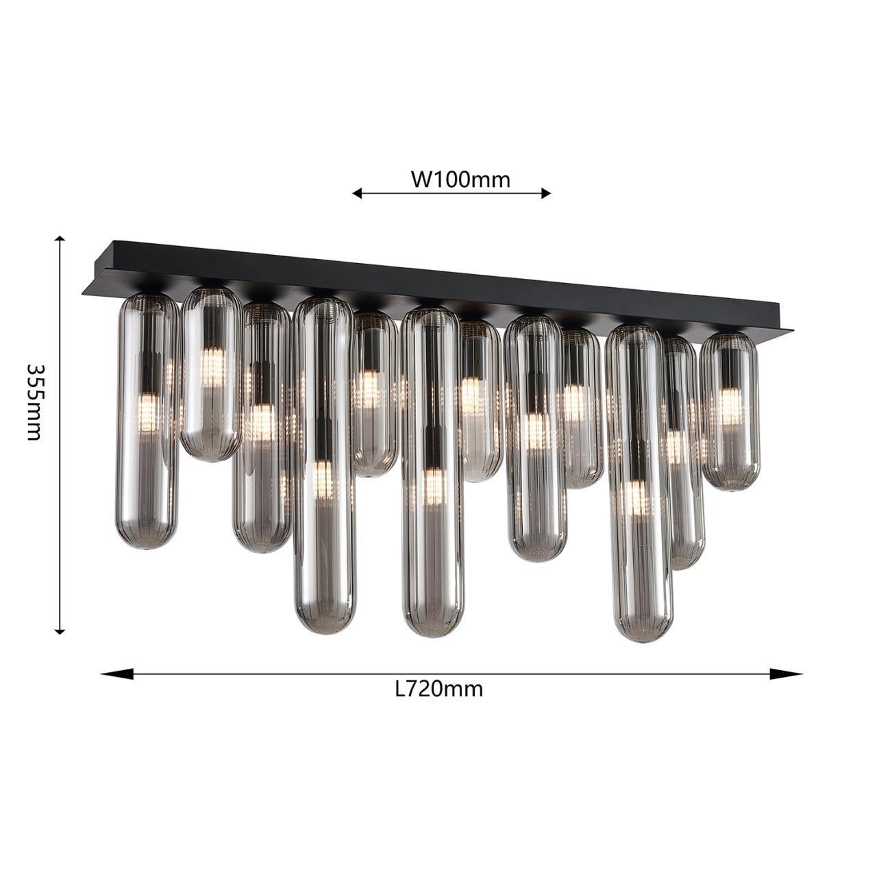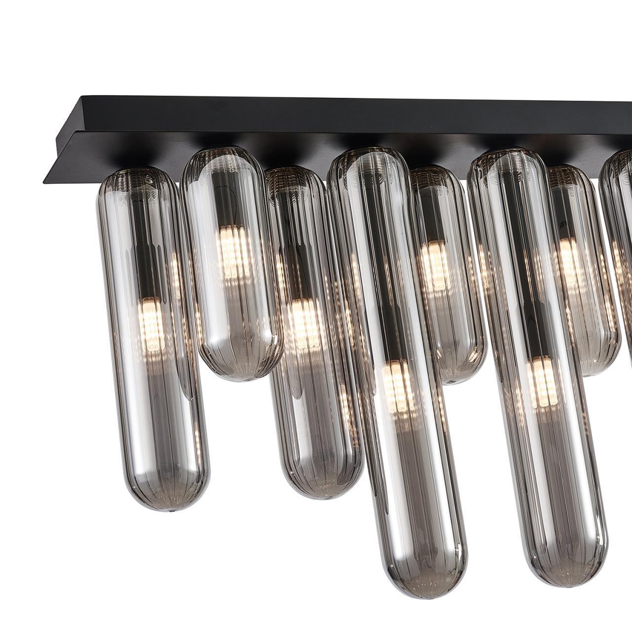 29900,00 ₽ 12 в наличии 350 гостиная; спальня; кухня; детская; холл; кафе; ресторан; кабинет; столовая; студия Светильник в виде прямоугольной платформы с удлиненными плафонами разной высоты 80 4454-12P, потолочный светильник, L720xW100xH355, 12xG9x28W, excluded