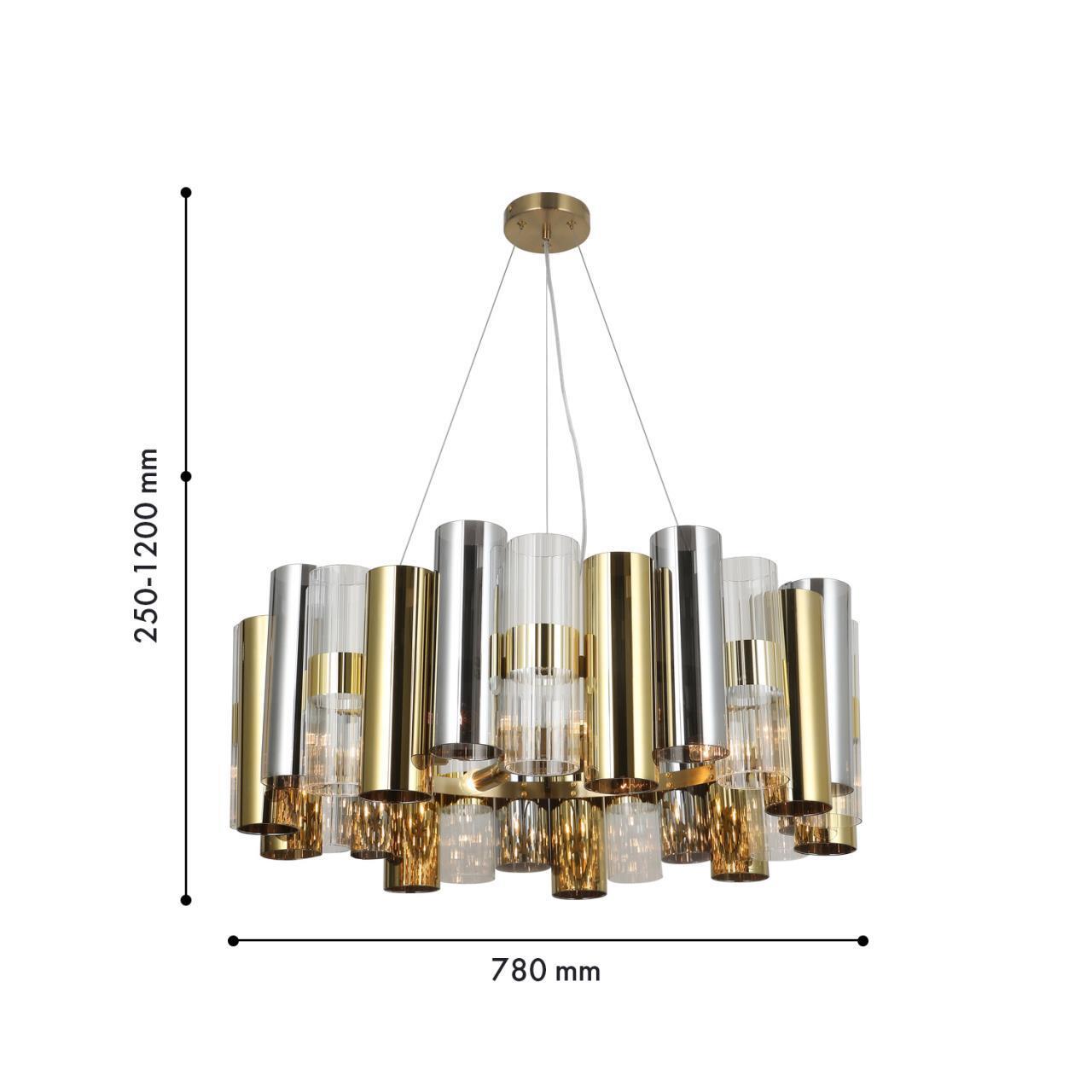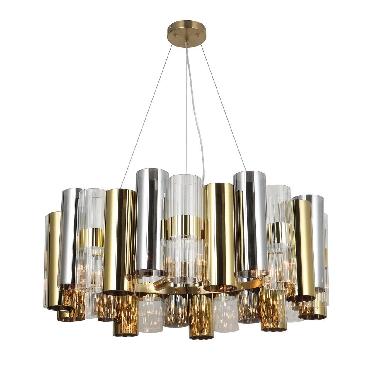 49000,00 ₽ 8 в наличии гостиная; спальня; кухня; детская; холл; кафе; ресторан; кабинет; столовая; студия зеркальное золото и прозрачный с декоративным рифлением и золотым ободком. 4477-6P, подвесная люстра, D780xH250/1200, 6xE14x60W, excluded