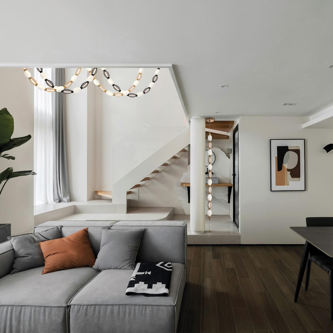 30000,00 ₽ 13 в наличии гостиная; спальня; кухня; детская; холл; кафе; ресторан; кабинет; столовая; студия Новаторская коллекция Perler стала воплощением функциональности и эстетики открывая бесконечные возможности для адаптации люстры в интерьер. 4559-2PC, подвесная/потолочная люстра, D200xH1780/2780 + D640xH890/1775 + D1800xH820/1725, 2xLEDx18W, 1990LM, 4000K, included
