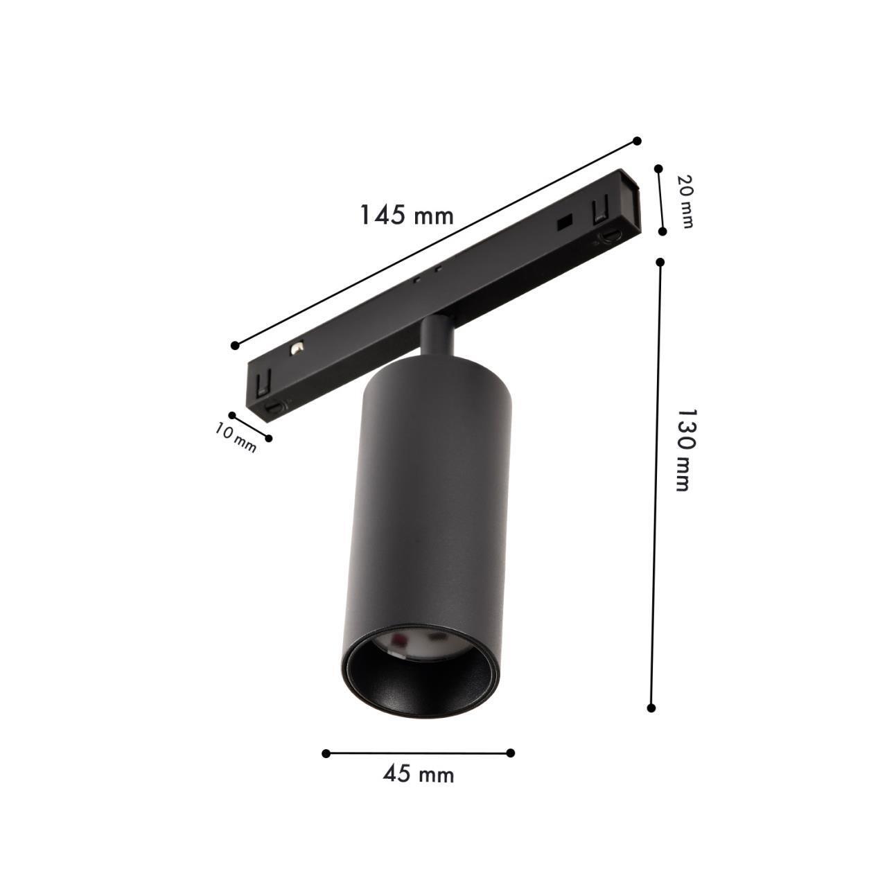 6200,00 ₽ 76 в наличии гостиная; спальня; кухня; детская; холл; кафе; ресторан; кабинет; столовая; студия Трековый поворотный светильник в цилиндрическом корпусе черного цвета 2700 4581-1U, трековый светильник, D45xL145xH130, LEDx10W, 48V, 660LM, 2700-5700K, CRI>90, beam angle:36, included