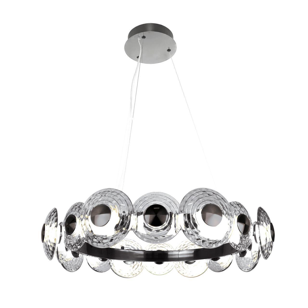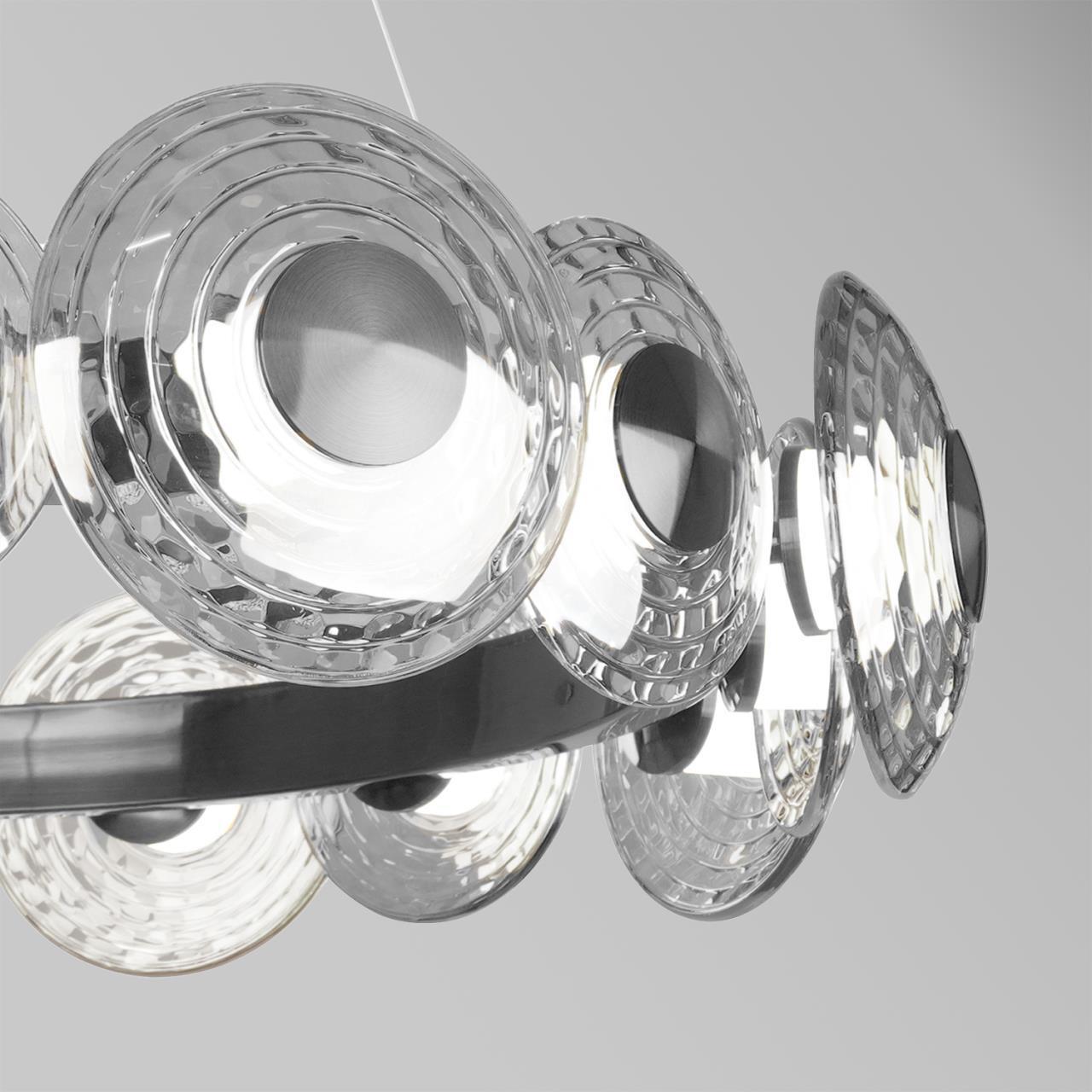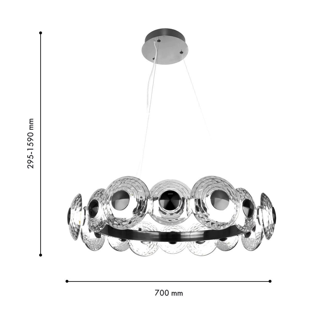80000,00 ₽ 28 в наличии гостиная; спальня; кухня; детская; холл; кафе; ресторан; кабинет; столовая; студия закругленные фактурные плафоны разного диаметра из прозрачного стекла 4643-16P, подвесная люстра, D700xH295/1590, LEDx72W, 8217LM, 4000K, included