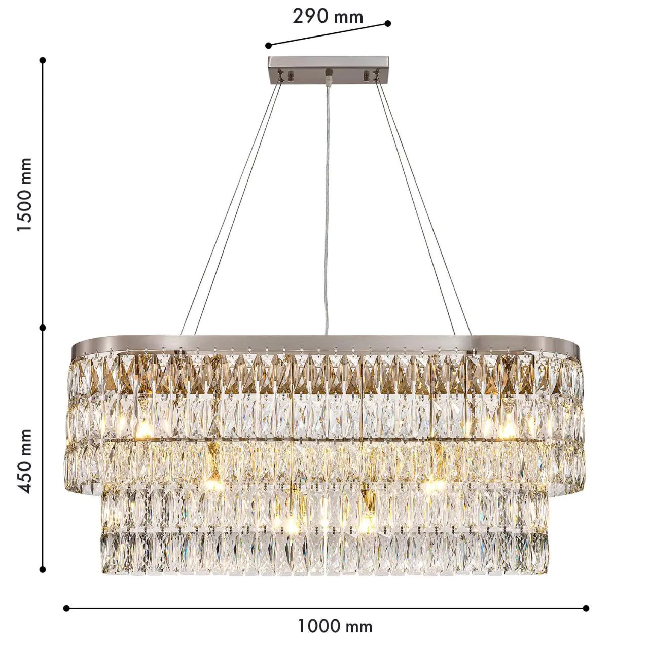 106400,00 ₽ 13 в наличии 250 гостиная; спальня; кухня; детская; холл; кафе; ресторан; кабинет; столовая; студия декор из прозрачных прямоугольников из хрустался высшего качества 100 4715-12U, Подвесная люстра, L1000xW290xH450/1950, 12xG9x40W, excluded