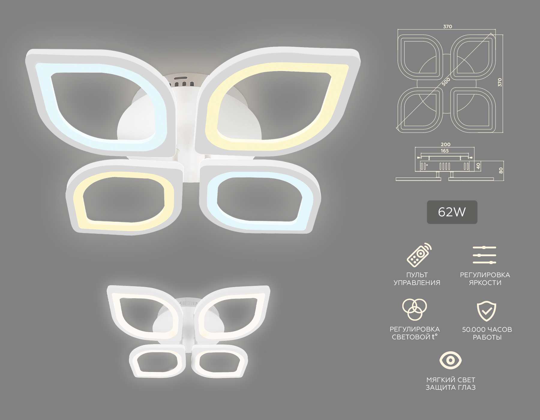 6260,00 ₽ 5 в наличии Потолочный светодиодный светильник с пультом Потолочный светодиодный светильник с пультом Люстры Потолочные люстры Original гостиная детская кухня прихожая спальня 62 50 18 12-24 5270 регулировка цветовой температуры регулировка яркости белый белый планка ИК -10..+40 0.2 PF>0.5 50 000 10 2 с пультом светодиодные Декоративный свет Потолочные люстры FA4488/4 WH белый 4200K/3000K+6400K/6400K+3000K 62W 500*500*150 (ПДУ ИК)