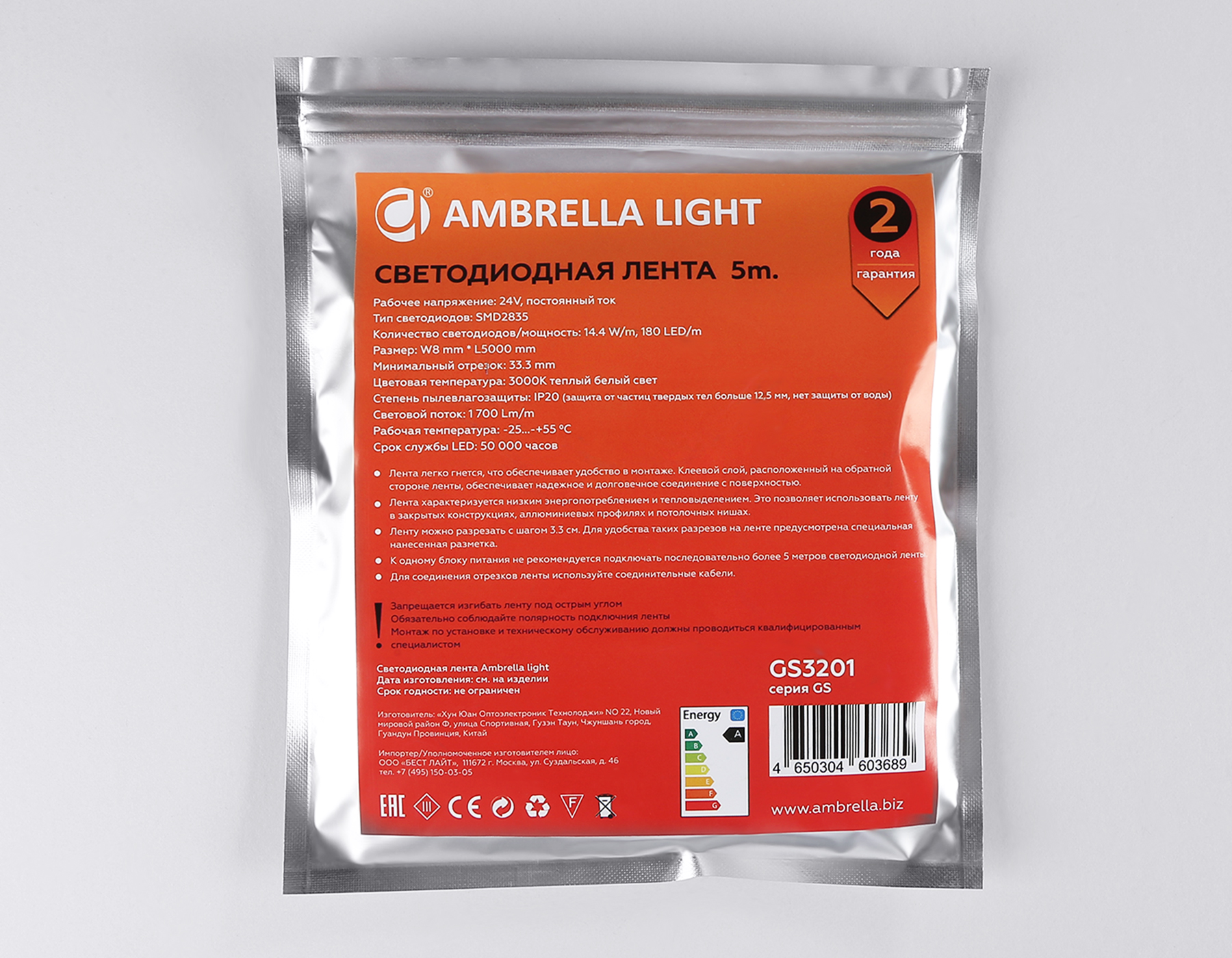 1720,00 ₽ 118 в наличии Светодиодная лента GS3201 2835 180Led /14.4W m/ 24V IP20 3000K 5m (2 конт.) Светодиодная лента Ambrella Light GS3201 2835 180Led /14.4W m/ 24V IP20 3000K 5m Интерьерная подсветка Лента светодиодная LED Strip 24V гостиная детская кухня прихожая спальня 14.4 Вт/м 50 1700 Лм/м белый белый -20..+55 50 000 10 2 180 2835 33 Интерьерная подсветка Светодиодные ленты Светодиодная лента 24V GS3201 2835 180Led/ 14.4W m/ 24V IP20 3000K/ 5000*8*1.2mm (2 конт.)