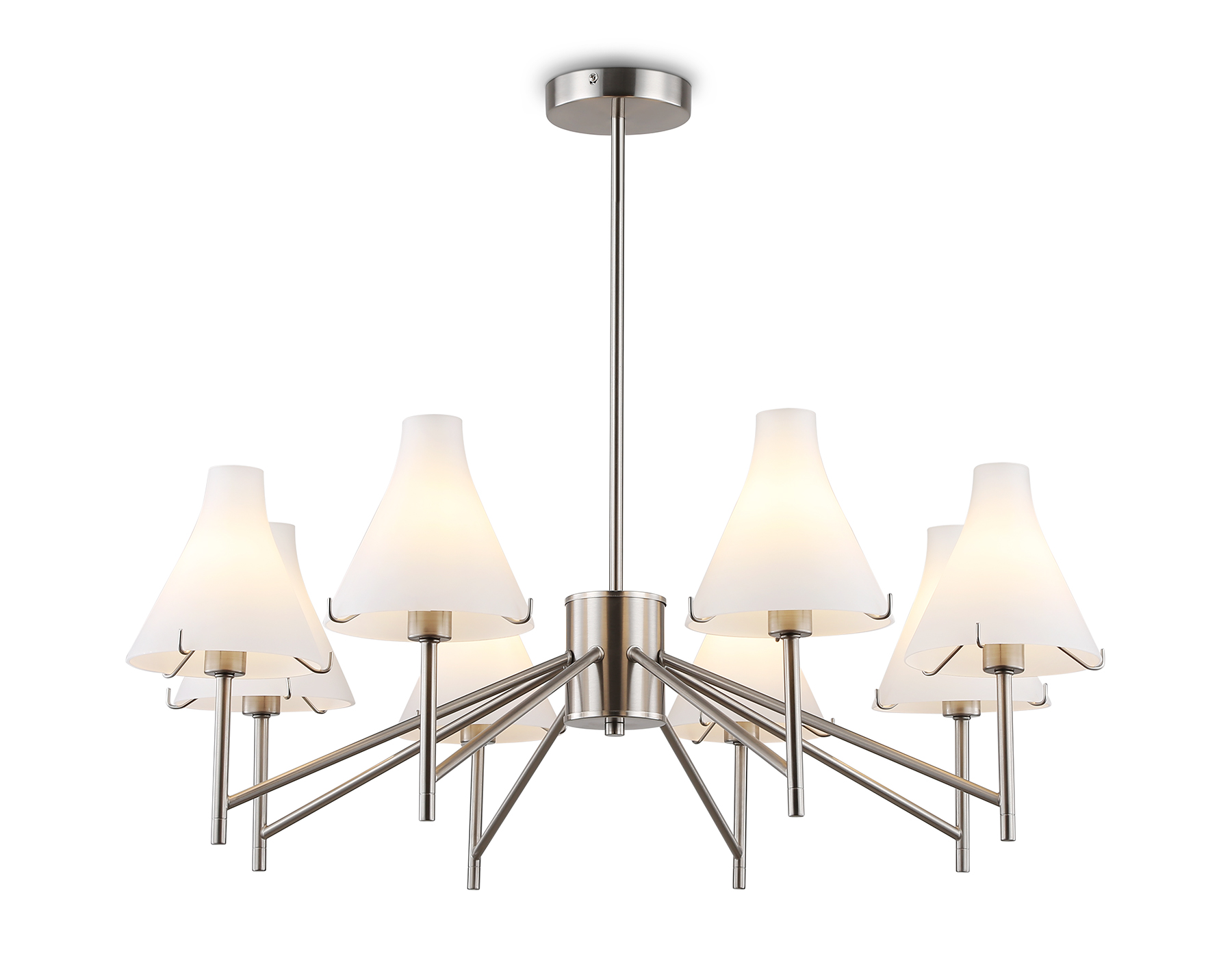 19870,00 ₽ 10 в наличии Светильник подвесной Люстра со стеклянными плафонами на штанге Люстры Люстры на штанге Modern гостиная детская кухня прихожая спальня 115 50 32 20-36 никель никель планка -20..+40 10 2 классические Декоративный свет Люстры на штанге LH57125/8 SN/FR никель/белый матовый E14/8 max 40W D800*650