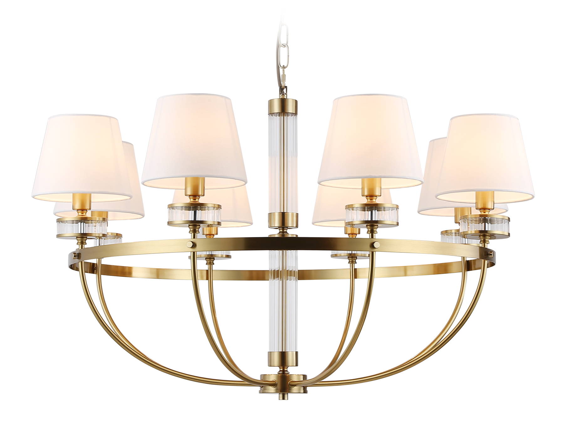 40990,00 ₽ 20 в наличии Светильник подвесной Подвесная люстра с абажурами Люстры Подвесные люстры Classic гостиная детская кухня прихожая спальня 80 50 32 24-40 латунь латунь крюк -20..+40 10 2 классические Декоративный свет Подвесные люстры LH71253/8 BS/WH латунь/белый E14/8 max 40W D870*990