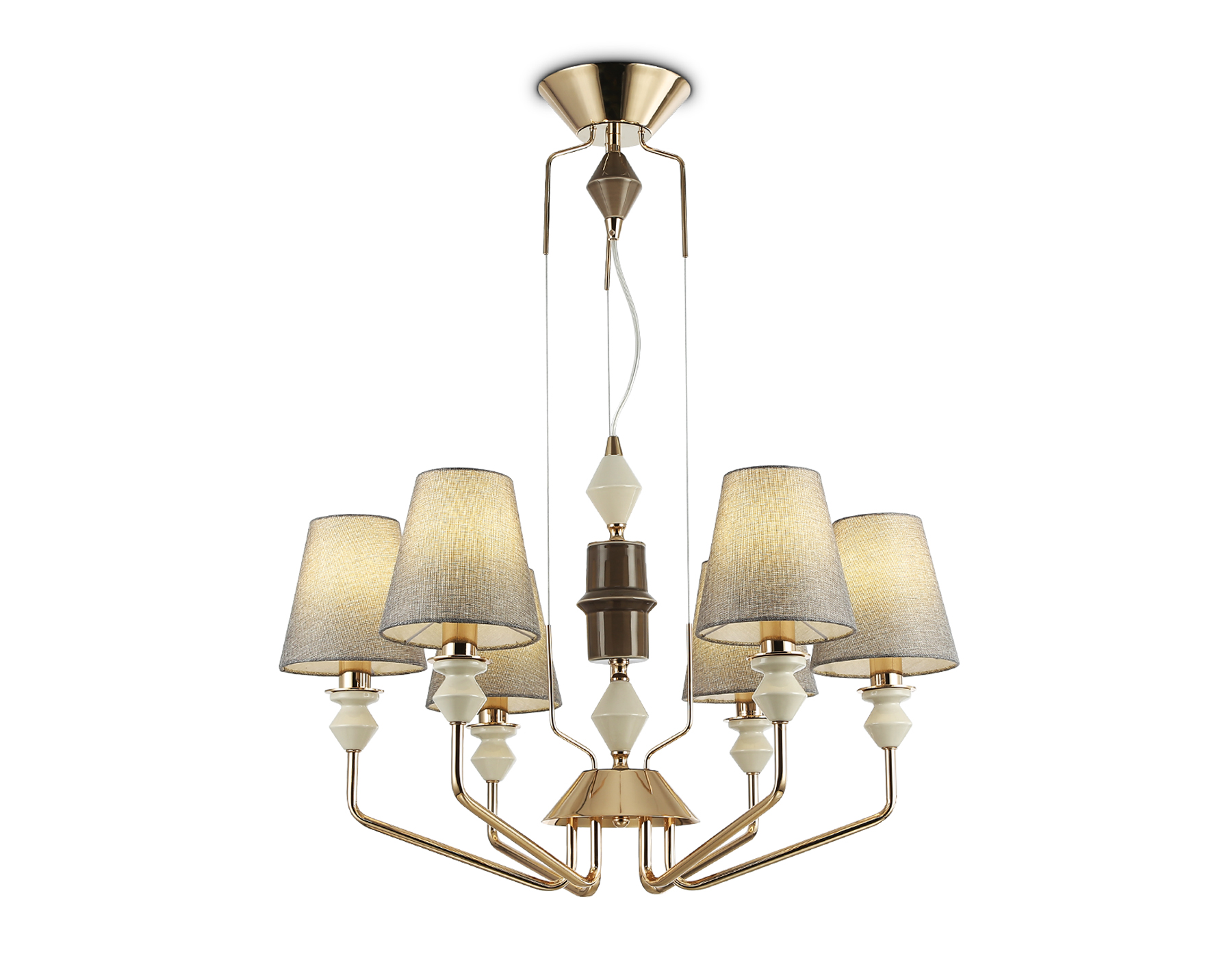 29990,00 ₽ 20 в наличии Светильник подвесной Подвесная люстра с абажурами Люстры Подвесные люстры Ceramo Classic гостиная детская кухня прихожая спальня 150 150 50 20 13-27 золото золото планка -20..+40 10 2 классические Декоративный свет Подвесные люстры LH75401/6 GD/GR золото/серый E14*6 max 40W D700*1260