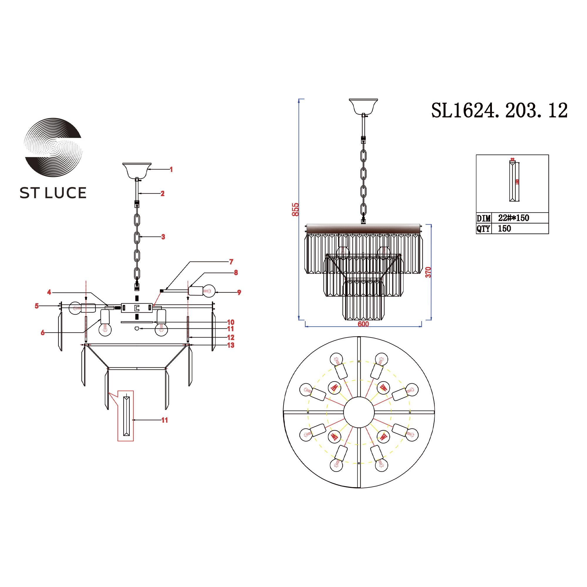 44127,00 ₽ 1 в наличии SL1624.203.12 Люстра подвесная ST-Luce шампань/прозрачный E14 12*40W ERCOLANO