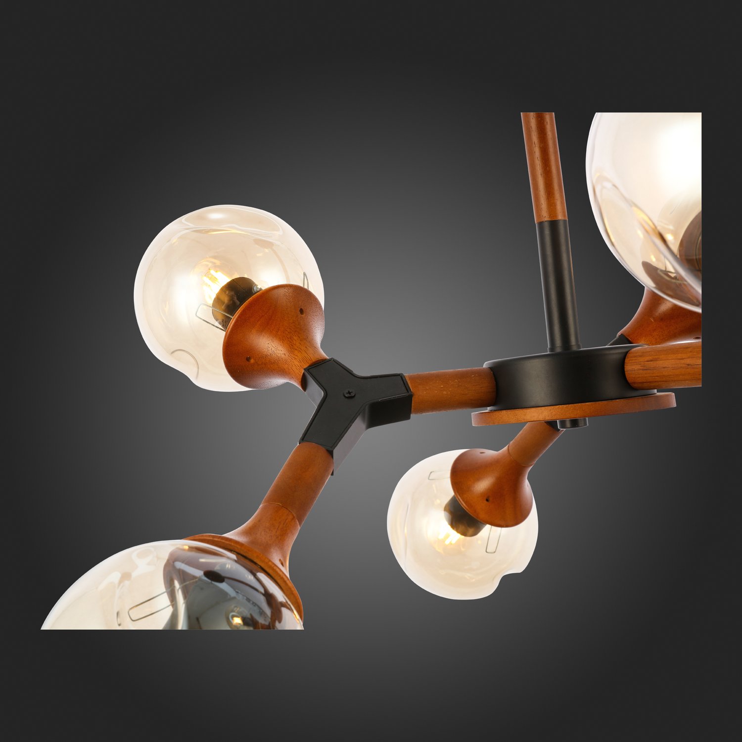 7175,00 ₽ 28 в наличии SLE109402-06 Светильник потолочный Черный, Темное дерево/Прозрачный, Янтарный E27 6*60W RAQUEL