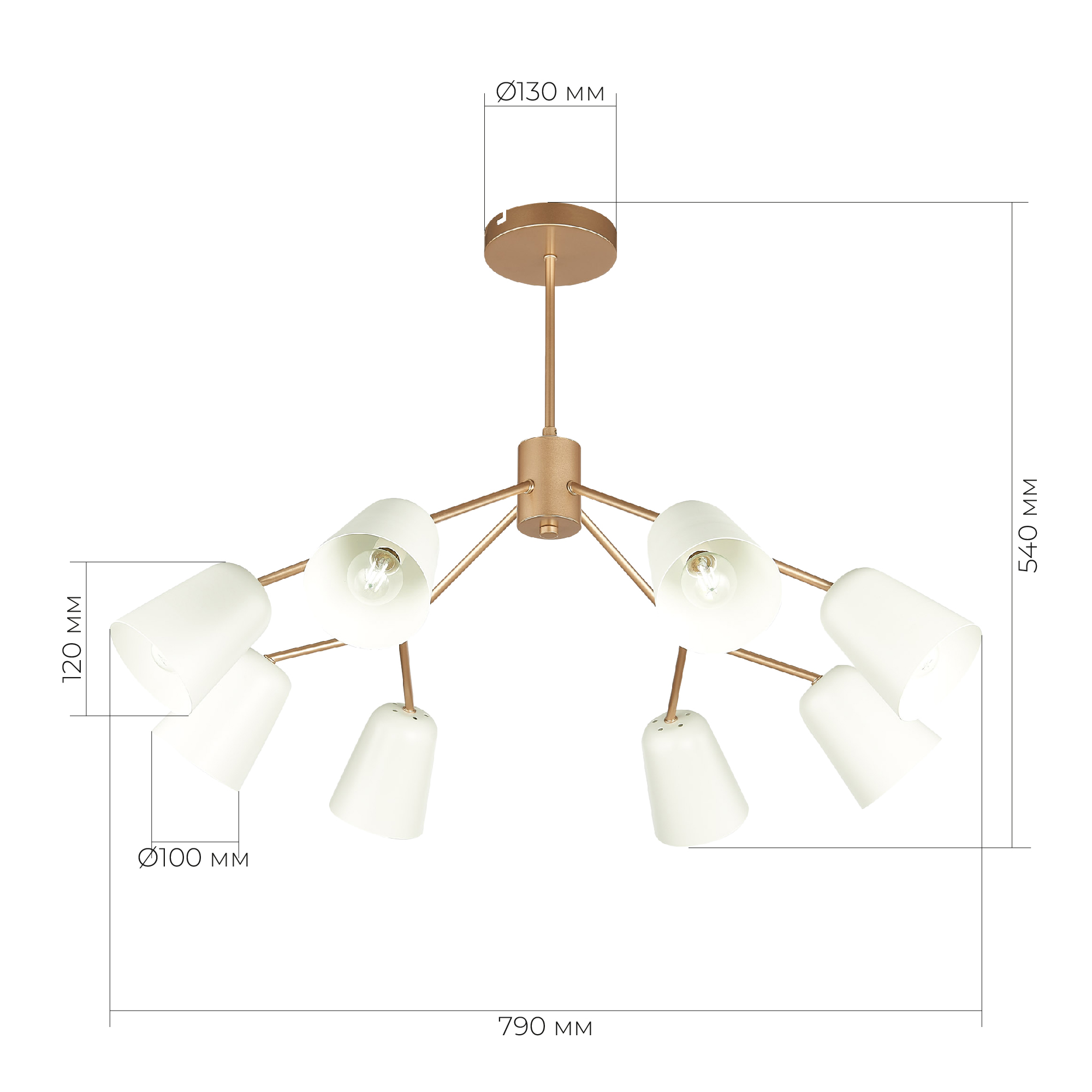 6163,00 ₽ 2 в наличии SLE155902-08 Светильник потолочный Золотистый/Белый E14 8*40W MARIO