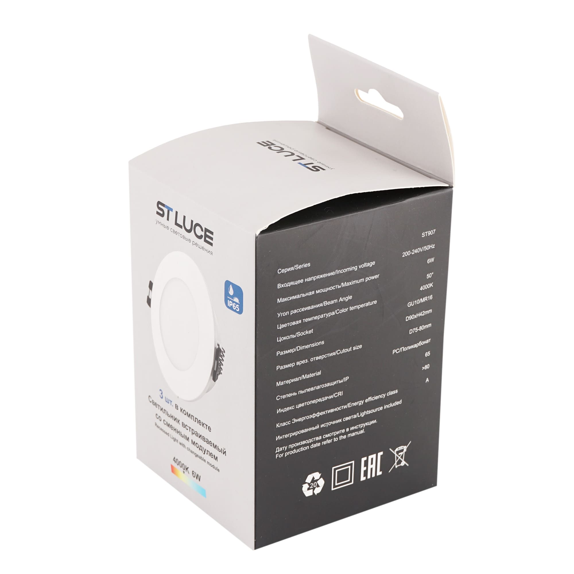 ST907.508.01_3 Светильник встраиваемый со сменным модулем ST-Luce белый/прозрачный LED 1*5.5W 4000K Встраиваемые светильники