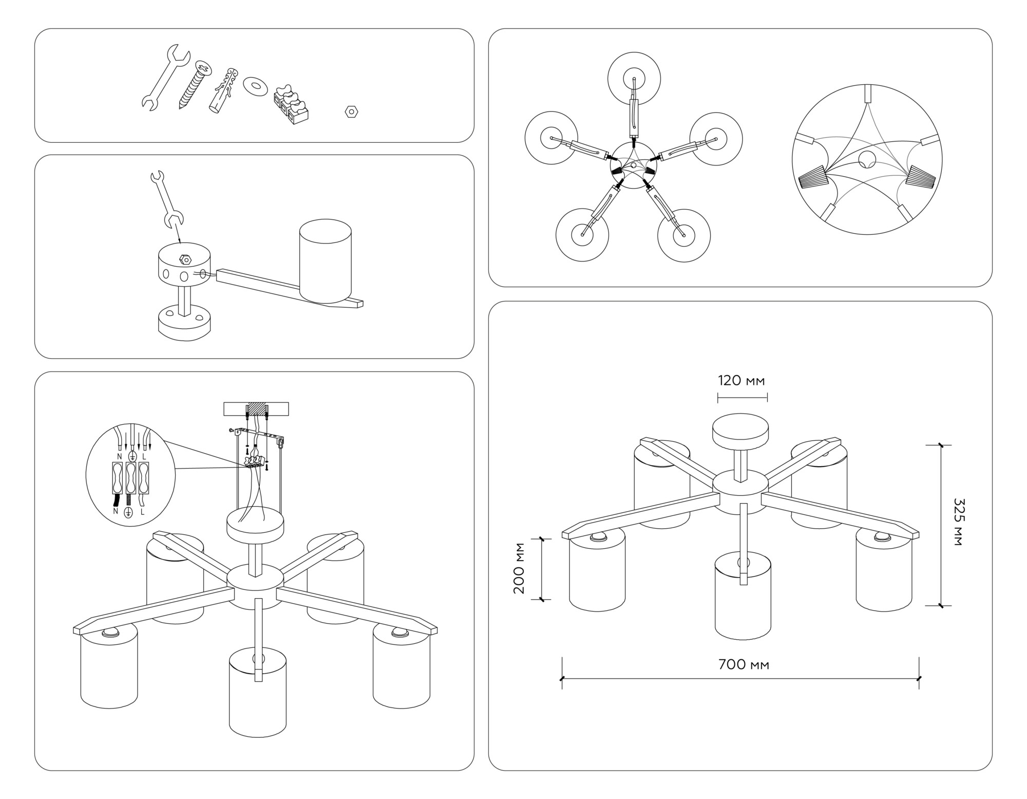 TR83113/5 WH/LW белый/светлое дерево E27/5 max 40W D700*325