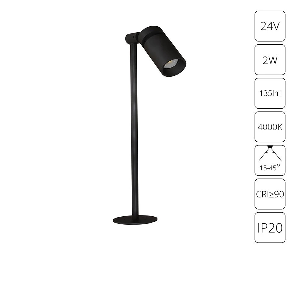 A6194LT-1BK СВЕТИЛЬНИК ЮВЕЛИРНЫЙ ВСТРАИВАЕМЫЙ PRESTO 24В 2Вт 135лм 4000К 90+ 15-45°
