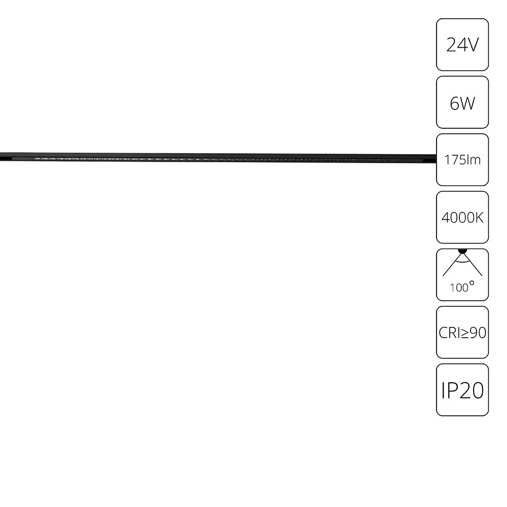 A6230PL-1BK СВЕТИЛЬНИК ТРЕКОВЫЙ ДЛЯ МАГНИТНОГО ШИНОПРОВОДА PRESTO 24В 6Вт 175лм 4000К 90+ 100°