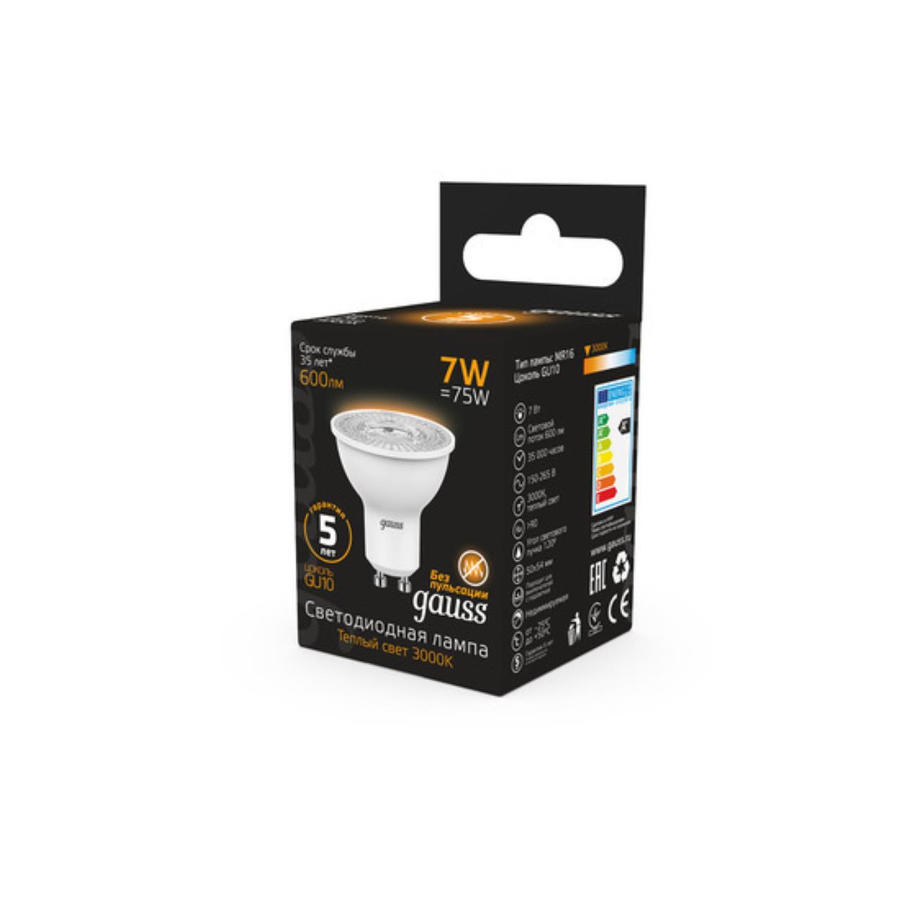 Светодиодная лампа Gauss Софит 7W 600Lm 3000K GU10 101506107