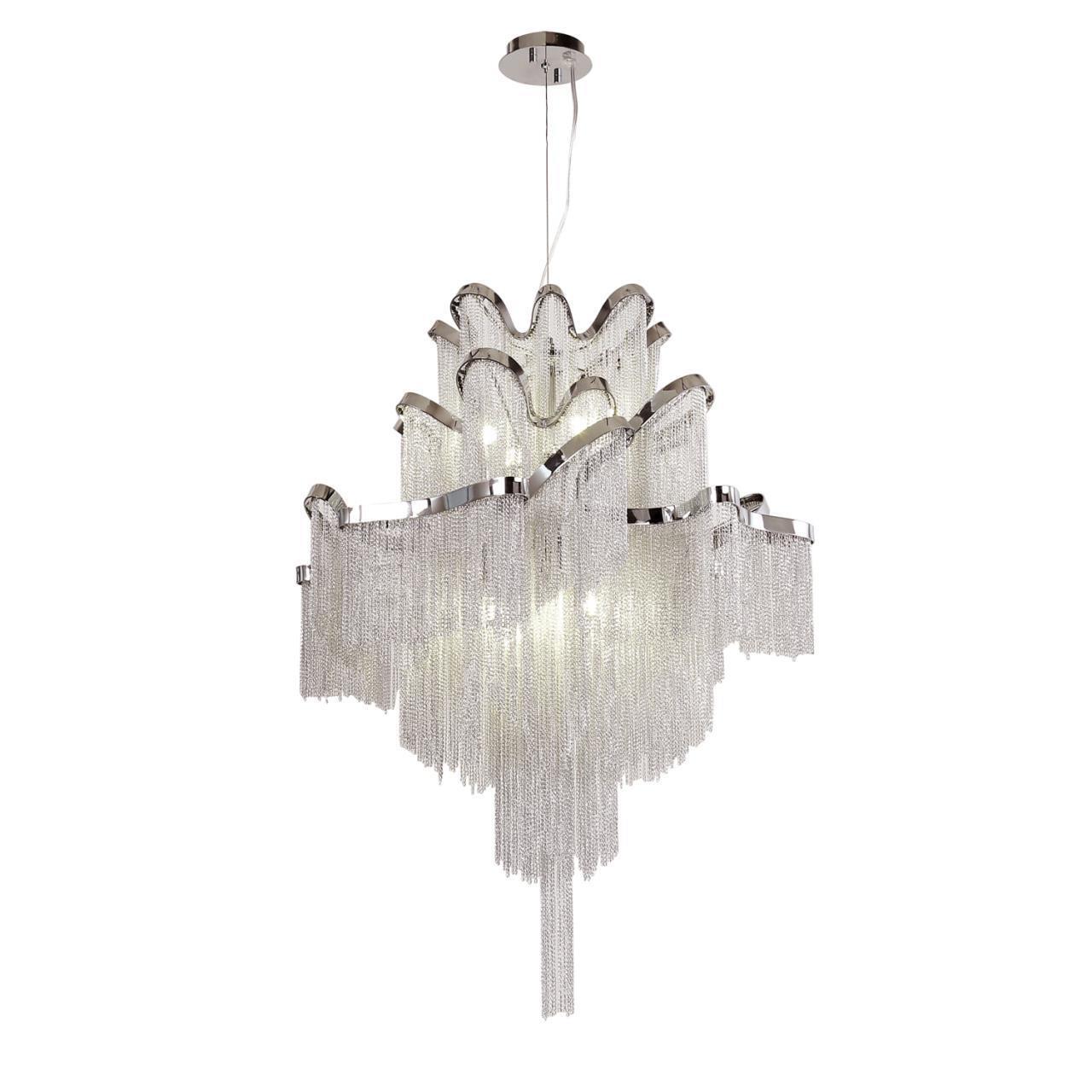 90400,00 ₽ 18 в наличии гостиная; спальня; кухня; детская; холл; кафе; ресторан; кабинет; столовая; студия напоминающих изысканную драпировку. Несмотря на свой уникальный дизайн создает завораживающий визуальный эффект благодаря сотням освещенных серебристых цепочек эта коллекция чрезвычайно универсальна и подходит практически для любого роскошного дома 1156-8P, подвесная люстра, D600xH880/1880, 8xE14x40W, excluded