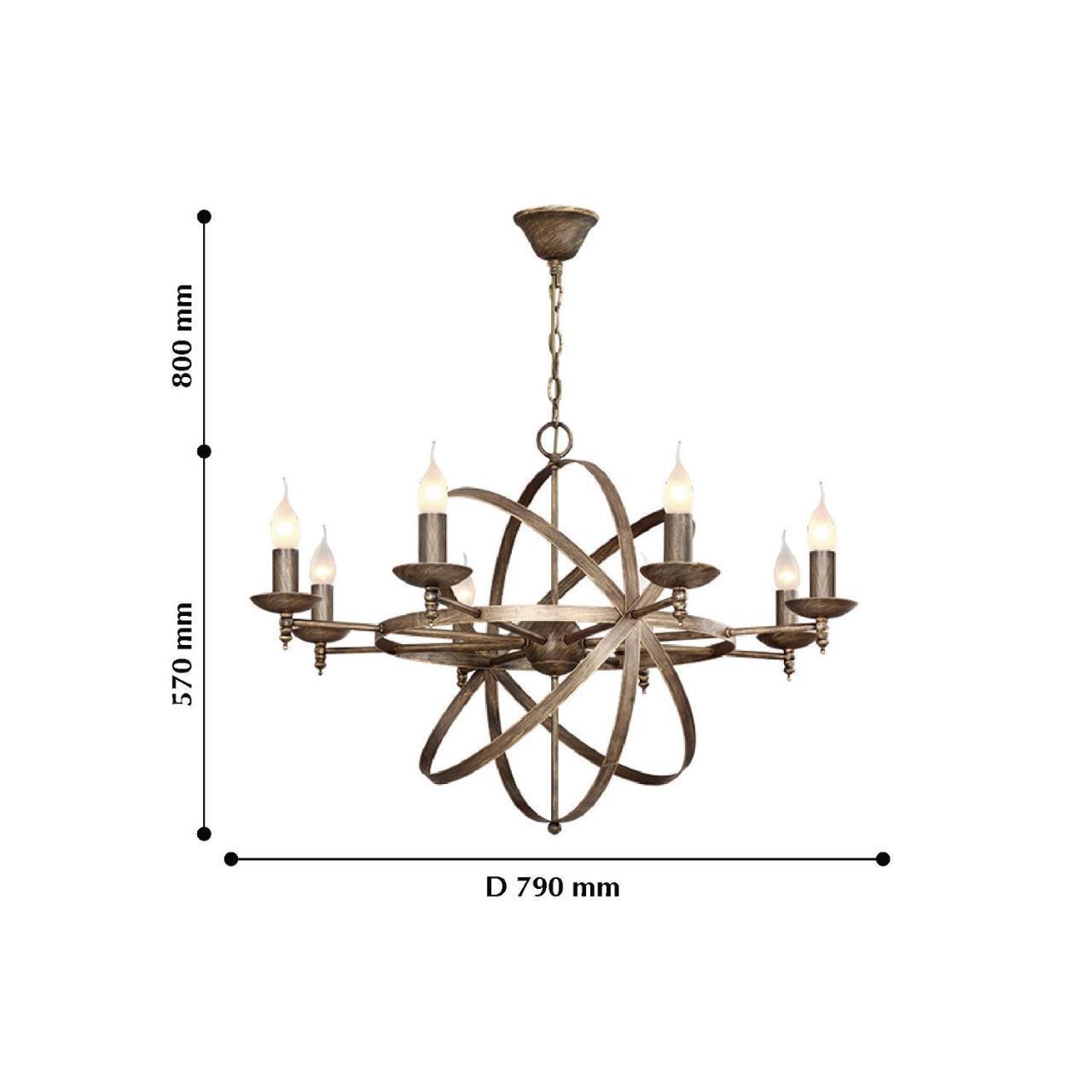 29700,00 ₽ 40 в наличии гостиная; спальня; кухня; детская; холл; кафе; ресторан; кабинет; столовая; студия Металлический каркас состаренного коричневого цвета с золотом 2166-8P, люстра подвесная, D790xH570/1370, 8xE14x40W, excluded