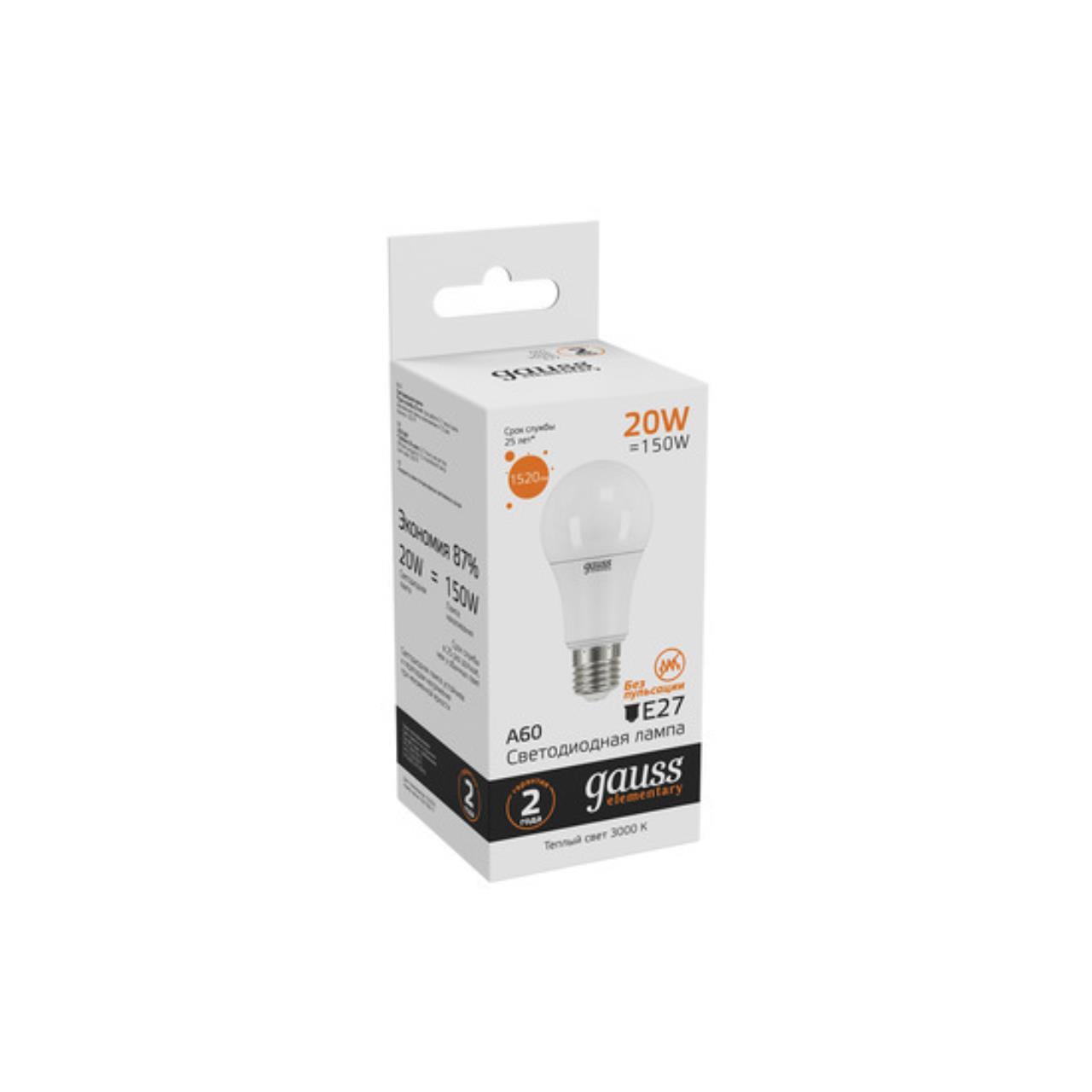 423,00 ₽ 60 в наличии 24 6 12,5 Алюминий||Пластик Светодиодная лампа Gauss A60 20W 1520Lm 3000K E27 23219 E27 Нет 20 РОССИЯ Короткий Маленький 240 Теплый 23219 Лампа Gauss LED Elementary A60 20W E27 1520lm 3000K 1/10/40