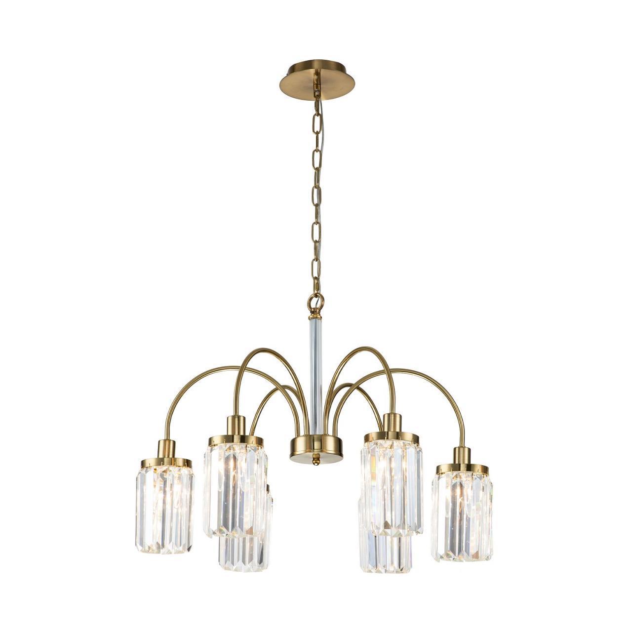 32000,00 ₽ 30 в наличии гостиная; спальня; кухня; детская; холл; кафе; ресторан; кабинет; столовая; студия Duke – коллекция в современном стиле. Рожки изысканной формы которые красиво преломляют свет ламп. Центральный шток украшен стеклянным цилиндром. покрыты золотой гальваникой и декорированы хрустальными подвесками прямоугольной формы 2969-6P, подвесная люстра, D660xH495/1495, 6xE14x40W, excluded