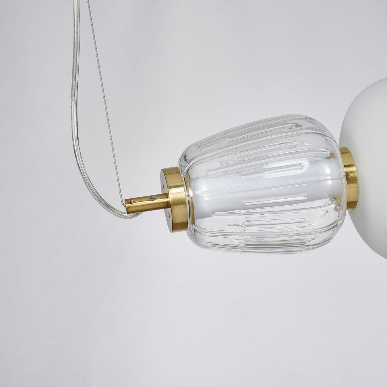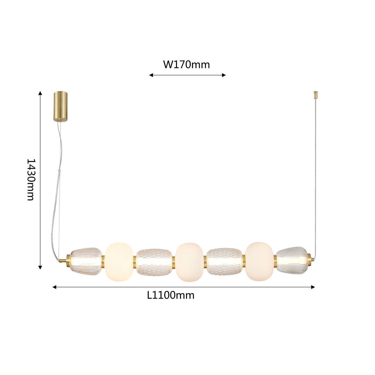 39200,00 ₽ 31 в наличии гостиная; спальня; кухня; детская; холл; кафе; ресторан; кабинет; столовая; студия плафоны в виде бусин разнообразных форм из выдувного стекла двух видов прозрачного и цвета опала 4057-3P, подвесная люстра, L1100xW170xH230/1430, LEDx47W, 3258LM, 3000K, included