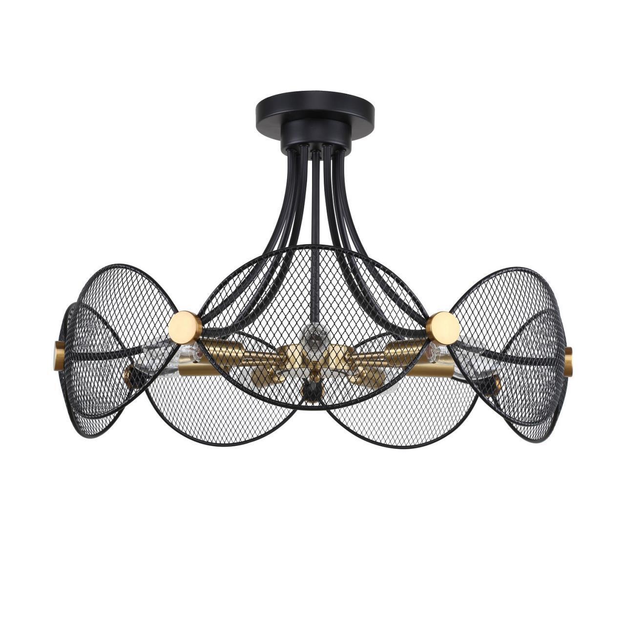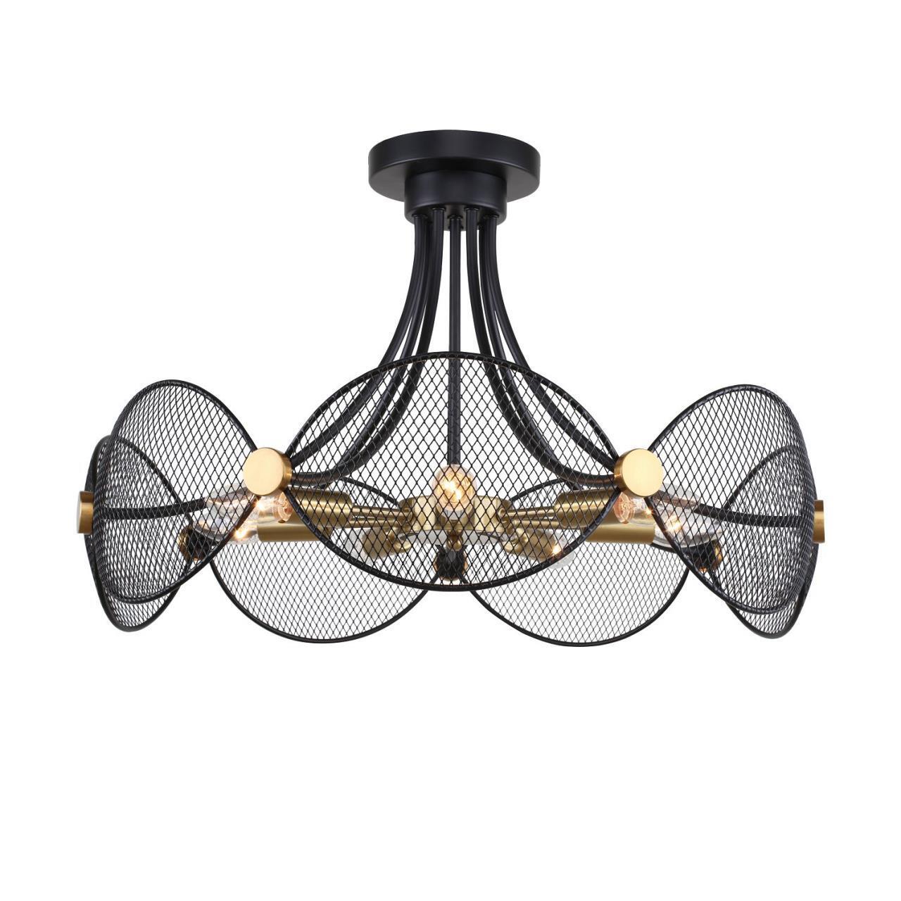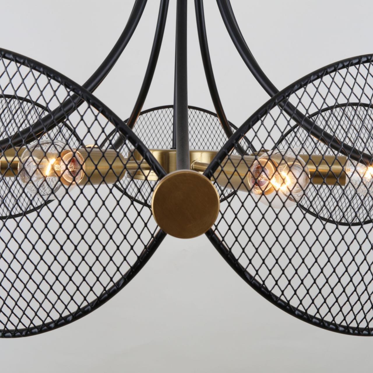 17000,00 ₽ 5 в наличии гостиная; спальня; кухня; детская; холл; кафе; ресторан; кабинет; столовая; студия декоративные элементы из перфорированного металла черного цвета Металлический каркас черного цвета в сочетании с декоративными элементами латунного цвета 4084-7P, подвесная люстра, D640xH400, 7xE14x40W, excluded