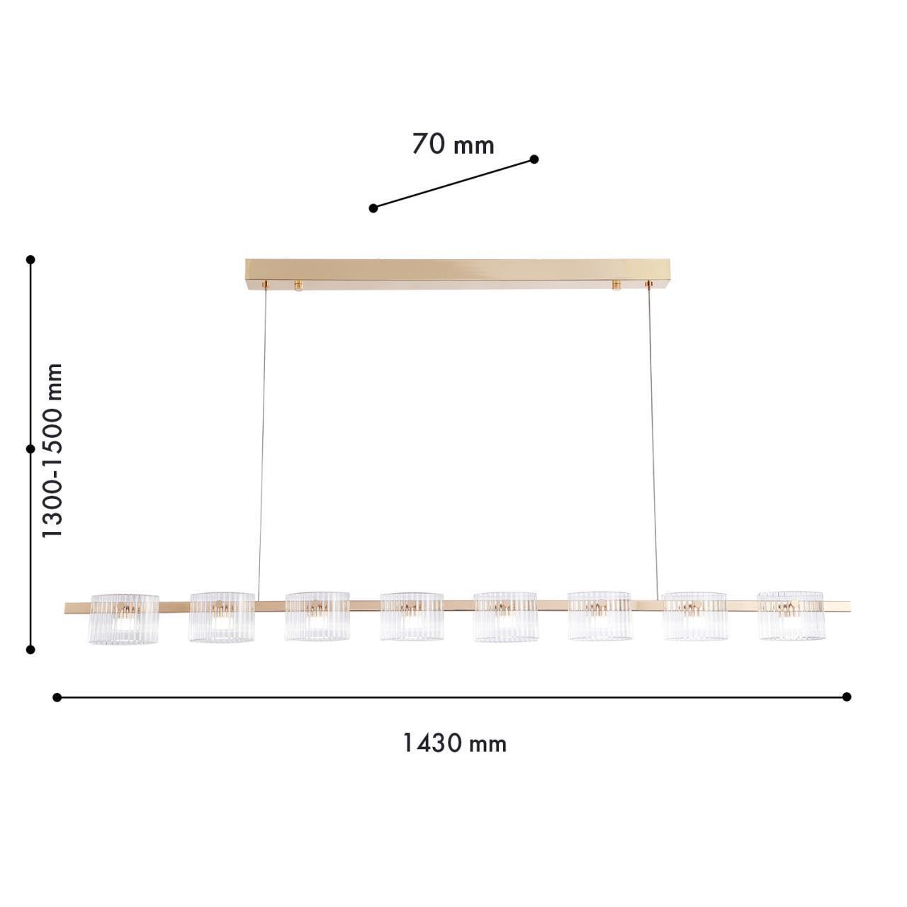 39900,00 ₽ 10 в наличии гостиная; спальня; кухня; детская; холл; кафе; ресторан; кабинет; столовая; студия В коллекции подвесных люстр Ori представлены светильники с прозрачными рифлеными плафонами 4248-8P, подвесная люстра, L1430xW70xH1300/1500, 8xLEDx5.25W, 960LM, 4000K, included