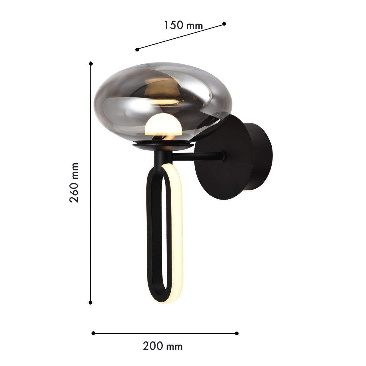 9900,00 ₽ 39 в наличии гостиная; спальня; кухня; детская; холл; кафе; ресторан; кабинет; столовая; студия внутри расположен LEDмодуль с закругленным акриловым рассеивателем Металлический каркас в черном цвете с выдувным стеклянным плафоном 4284-1W, настенный светильник, D200xW150xH260, LEDx9W, 450LM, 4000K, included