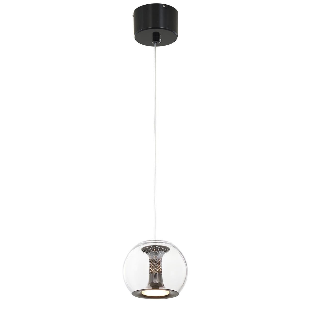 10900,00 ₽ 45 в наличии гостиная; спальня; кухня; детская; холл; кафе; ресторан; кабинет; столовая; студия плафон из выдувного стекла с внутренним декором в виде сетки из литого алюминия 4335-1P, подвес, D120xH300/1800, LEDx7W, 560LM, 4000K, included