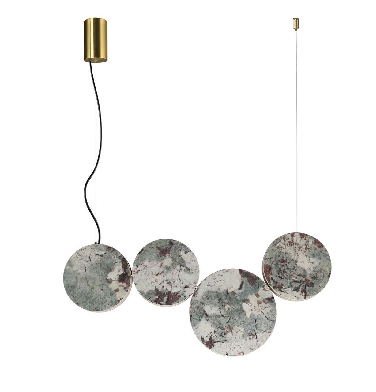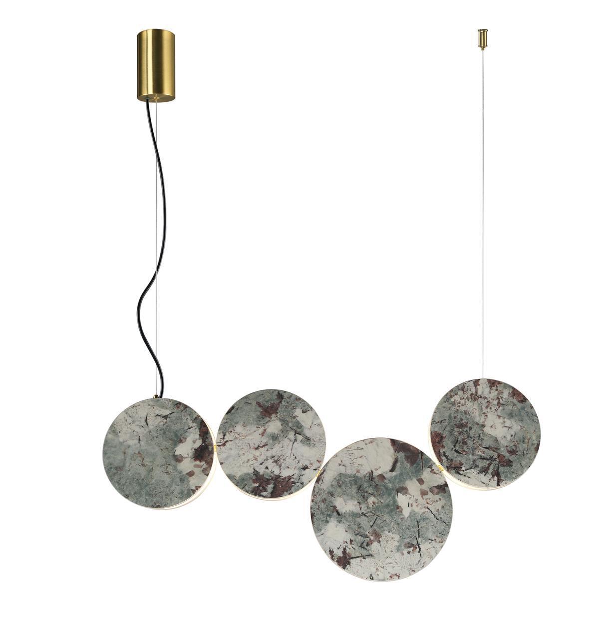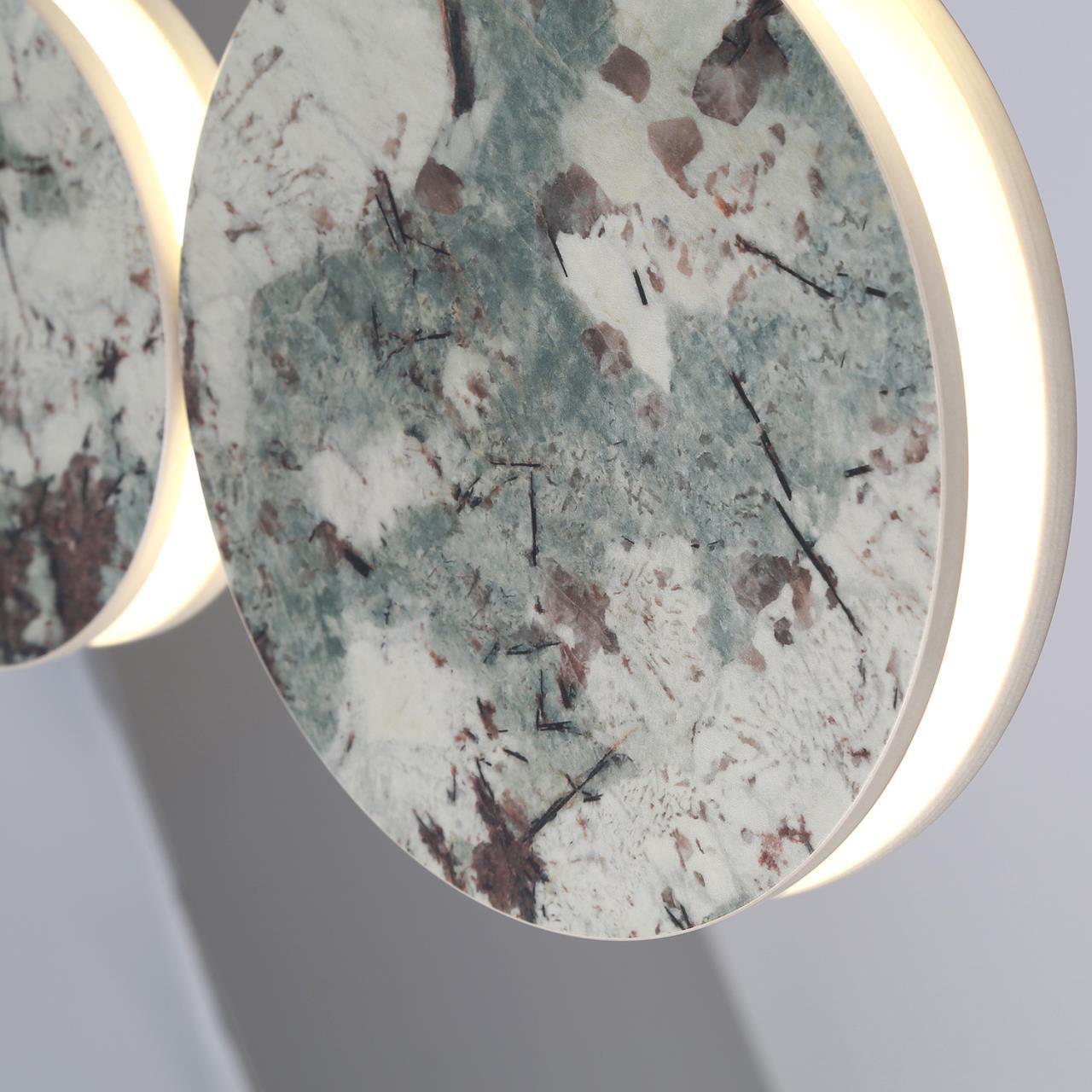 49900,00 ₽ 22 в наличии гостиная; спальня; кухня; детская; холл; кафе; ресторан; кабинет; столовая; студия светящегося по контуру. Светильники уникальны по стилистике и по цветовому решению что делает их понастоящему революционными в декоративном дизайне. Двусторонний плафон из искусственного мрамора серозеленого оттенка в форме диска 4447-4P, подвесная люстра, L700xW80xH1930, LEDx32W, 670LM, 4000K, included