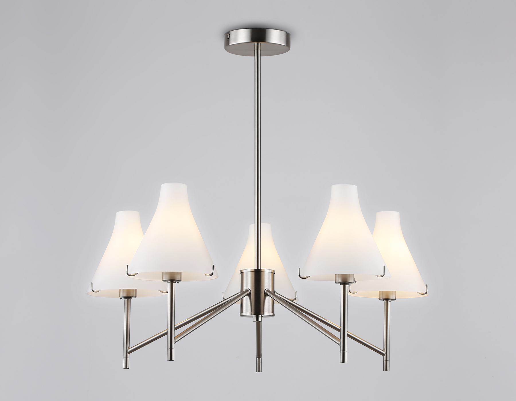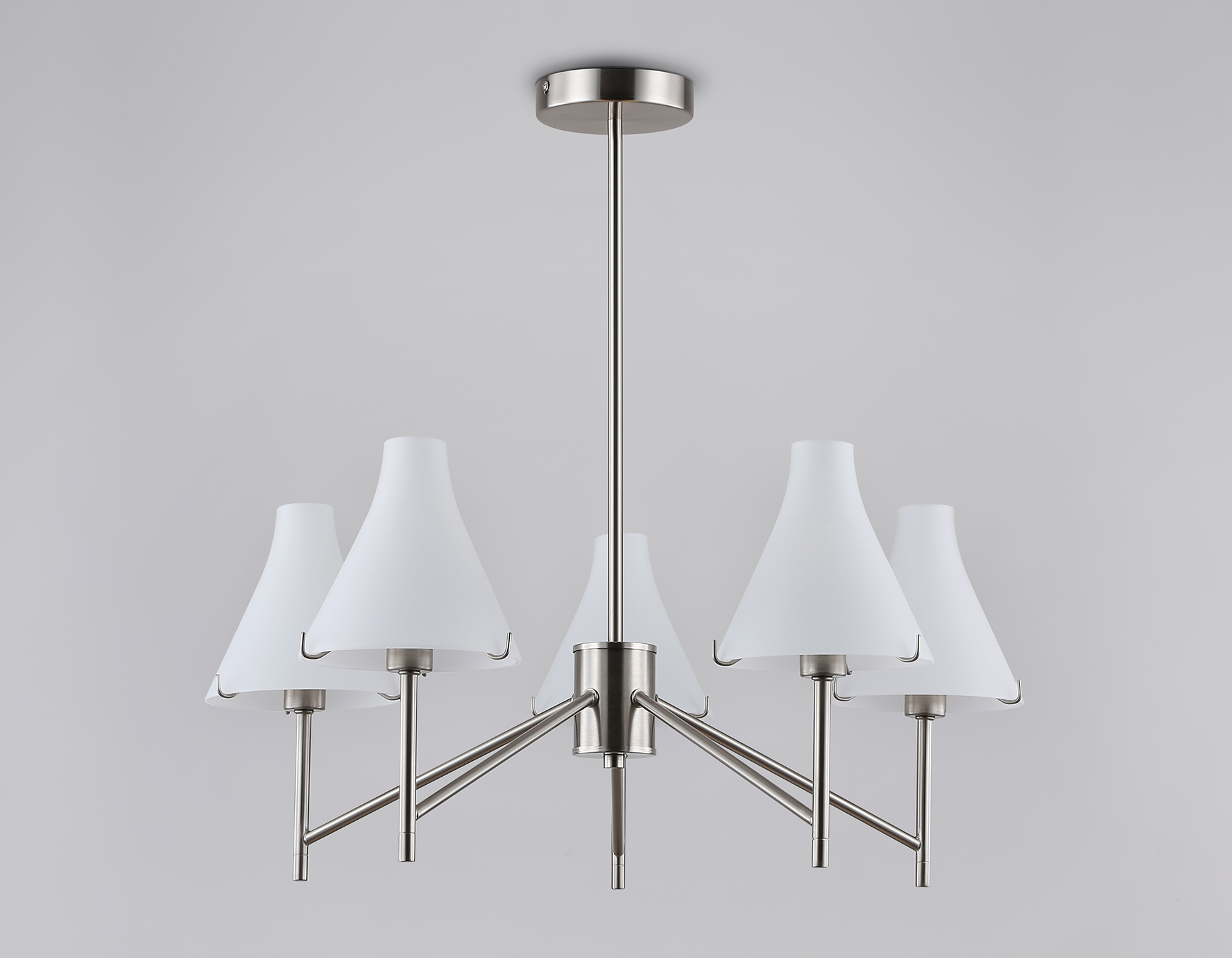 13150,00 ₽ 18 в наличии Светильник подвесной Люстра со стеклянными плафонами на штанге Люстры Люстры на штанге Modern гостиная детская кухня прихожая спальня 115 50 23 18-30 никель никель планка -20..+40 10 2 классические Декоративный свет Люстры на штанге LH57123/5 SN/FR никель/белый матовый E14/5 max 40W D650*590