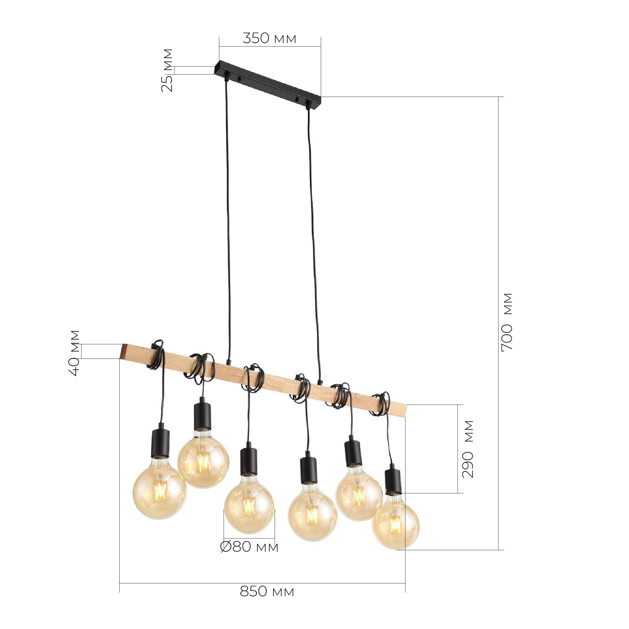 8690,00 ₽ 1 в наличии SL1142.403.06 Светильник подвесной Черный, Светлое дерево E27 6*60W BAGETTI