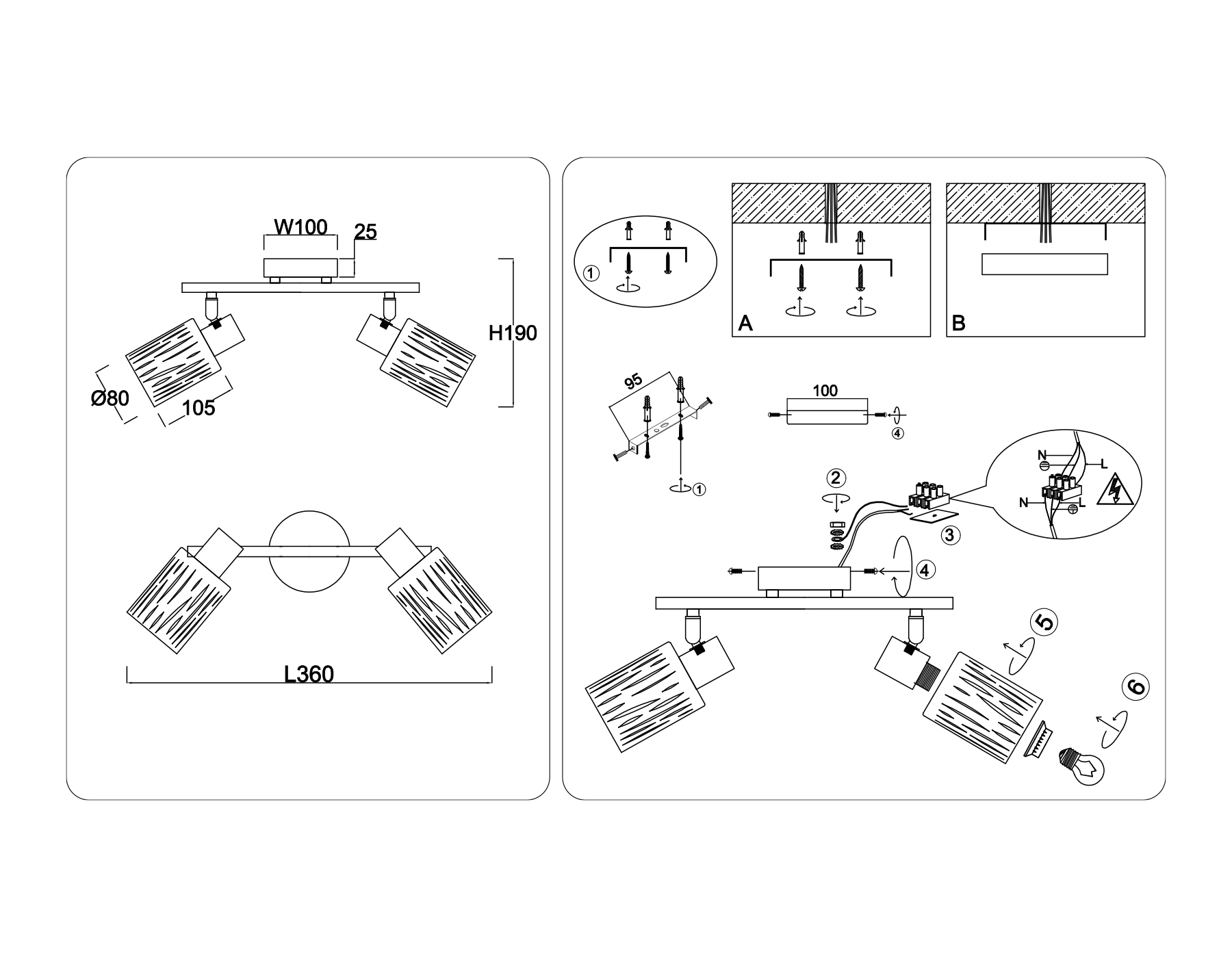 2790,00 ₽ 50 в наличии Светильник накладной Настенно-потолочный спот в стиле лофт Светильники Споты декоративные Loft гостиная детская кухня прихожая спальня 80 95 50 4 3-6 бронза черный бронза черный планка да 320/90 -20..+40 10 2 Светильники Споты декоративные TR8668/2 BK/SB чёрный/бронза E14/2 max 60W 360*100*190